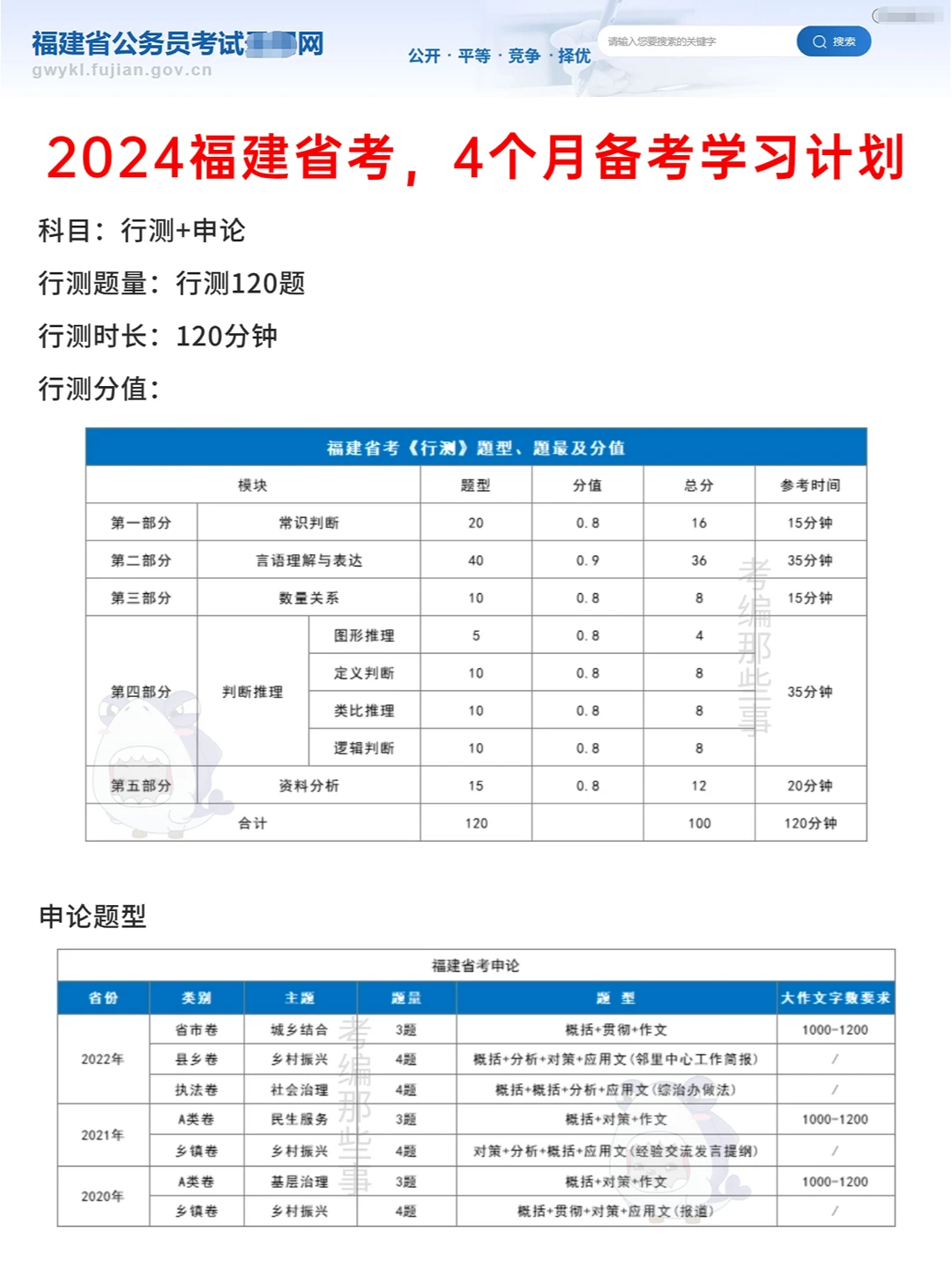 在正式开始学之间,可以做一下两套福建省考往年的卷子,感受一下整体难度,了解大致的题型和自己的基础