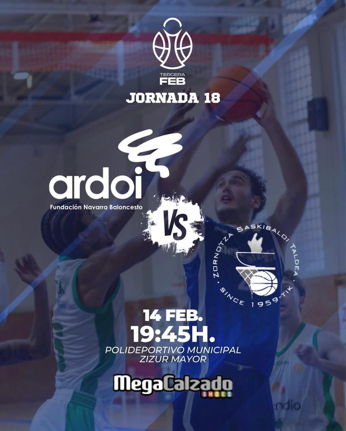 Megacalzado Ardoi 的 3ª FEB 球队将于本周六 19:45 在 Zizur Mayor 综合体育馆迎来本赛季最艰难的比赛之一。Jon Ganuza 执教的 Ardoi 将坐镇主场,对阵 Teknei Bizkaia Zornotza——目前的联赛领头羊,战绩为 16 胜 1 负。这是一场难度极高、对纳瓦拉球队意义重大的对决。
