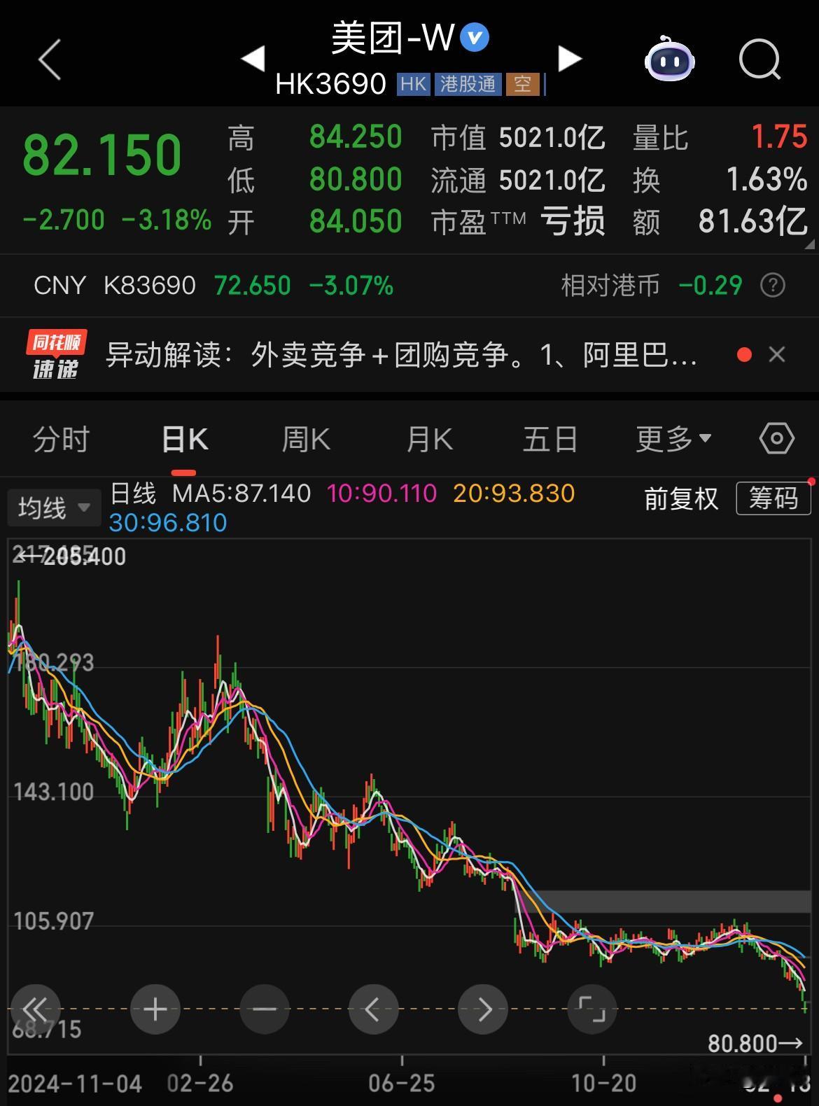美团业绩预警,市场对于美团近一年多跌去62%来说是非常矛盾的。 一方面看到其亏损,严重拖累了恒生科技指数和对企业未来的担忧,必将影响众多骑手的生存和工作环境。 另一方面痛恨其作为平台压榨实体餐饮服务行业的利润空间,极限要求骑手们的工作强度和高标准,造成了很多社会问题。 但是美团的背后是数千万骑手的工作岗位和商家的生意及他们背后的无数家庭,从这方面来说美团的存在是很大一部分人最后的选择和托底,是社会基层稳定的基础。