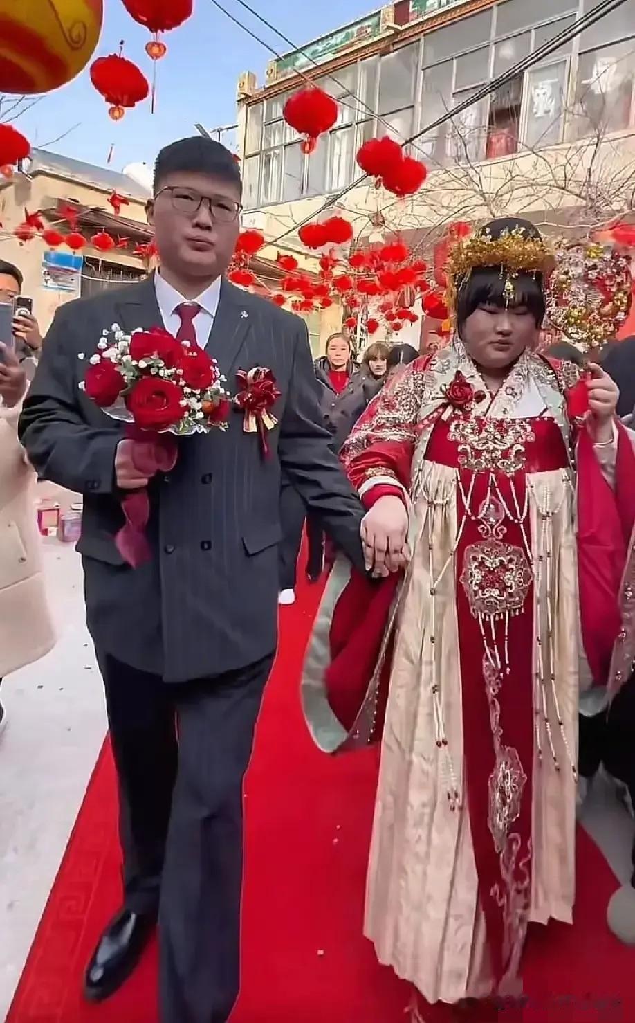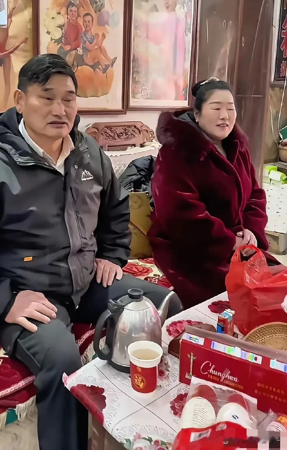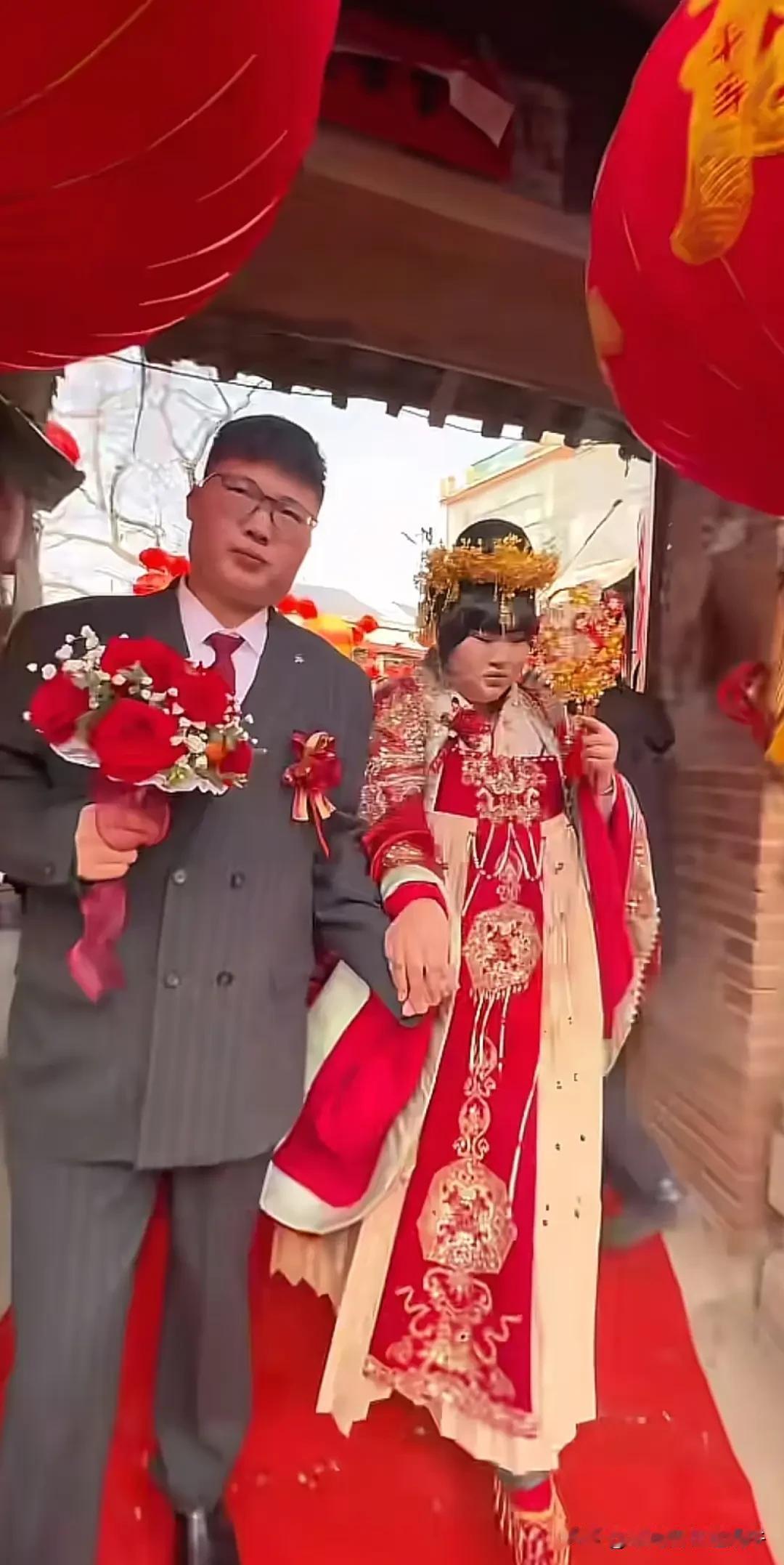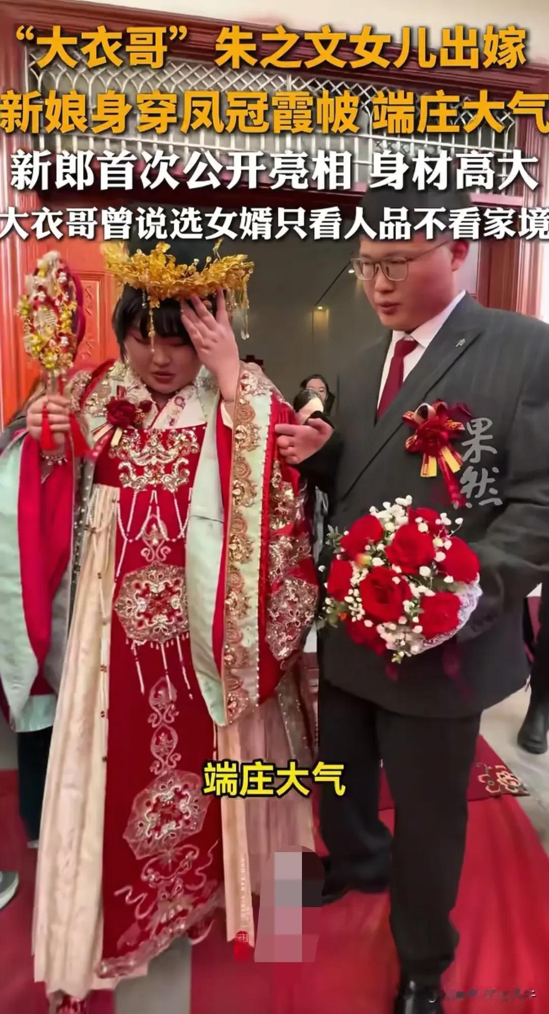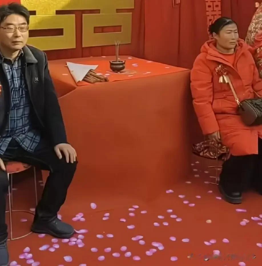 大喜的日子,公公婆婆怎么看起来不高兴呢,看穿着面相气质,新郎这一家人也是老实本分的农村人家,和大衣哥家的财力肯定没法比,大衣哥女儿嫁过去不会受气,不知道公婆是紧张还是严肃,怎么没有平日农村娶儿媳妇的高兴劲儿呢?仔细看了看小伙子的长相,个子不矮,面相本本分分,白白胖胖,很有福相,穿着西装也是一表人才,正所谓不是一家人,不进一家门,这小伙子有福了。