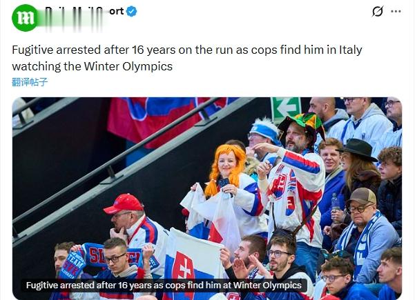 直播吧2月14日讯据《邮报》报道,斯洛伐克一男子潜逃16年后,回意大利观看冬奥会被捕。