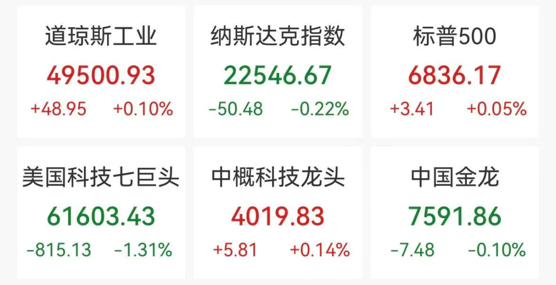 中概股涨跌不一,纳斯达克中国金龙指数跌0.10%。腾讯音乐涨逾4%,百胜中国涨超3%,禾赛科技、网易涨超2%。跌幅方面,晶科能源跌近3%,阿特斯太阳能、新东方、阿里巴巴跌超2%,理想汽车跌近2%。