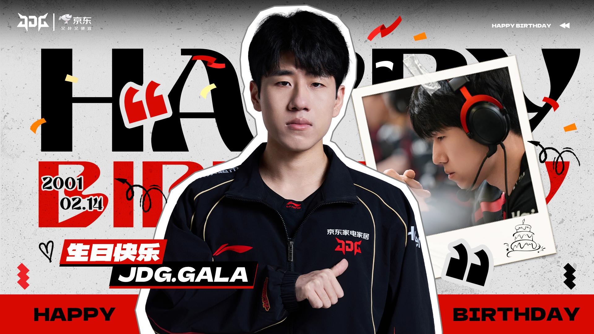 虎扑02月14日讯JDG发文祝贺AD选手GALA25岁生日快乐,祝福文案如下: