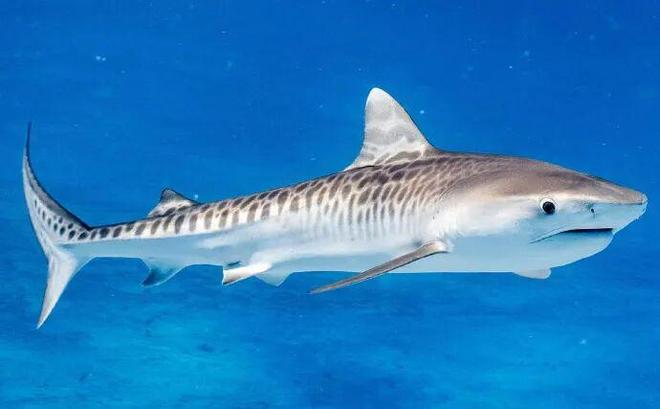 “鼬鲨?不是叫虎鲨吗?”不对啦,真正的虎鲨是长图1这样!别看长得一副无辜脸,鼬鲨可是海洋中出了名的“狠角色”。其俗称“虎鲨”来自于体表酷似虎纹的斑斓花纹(图2),再加上凶猛如虎的性格,无疑给沿海地区的居民留下了深刻的印象。