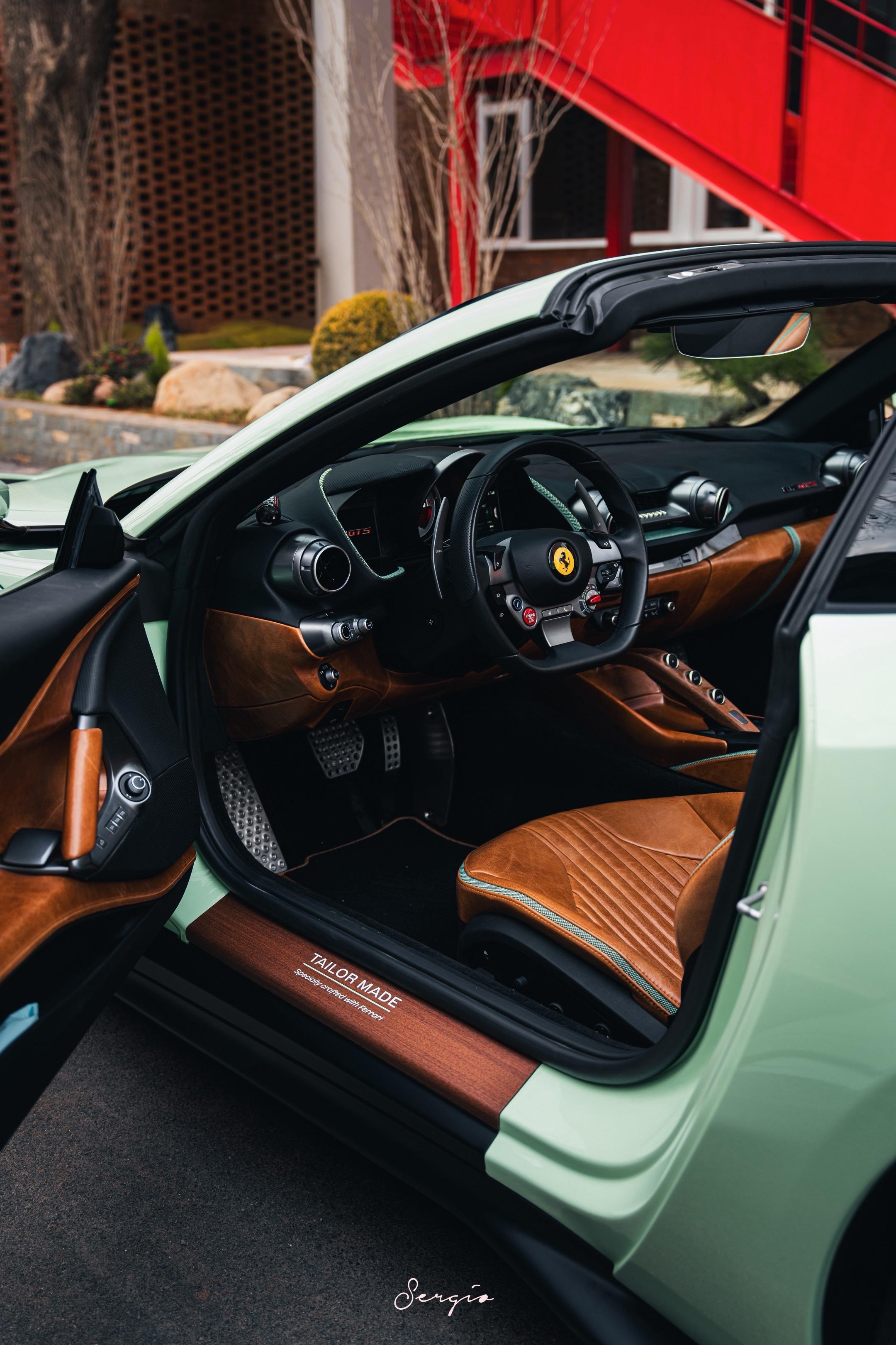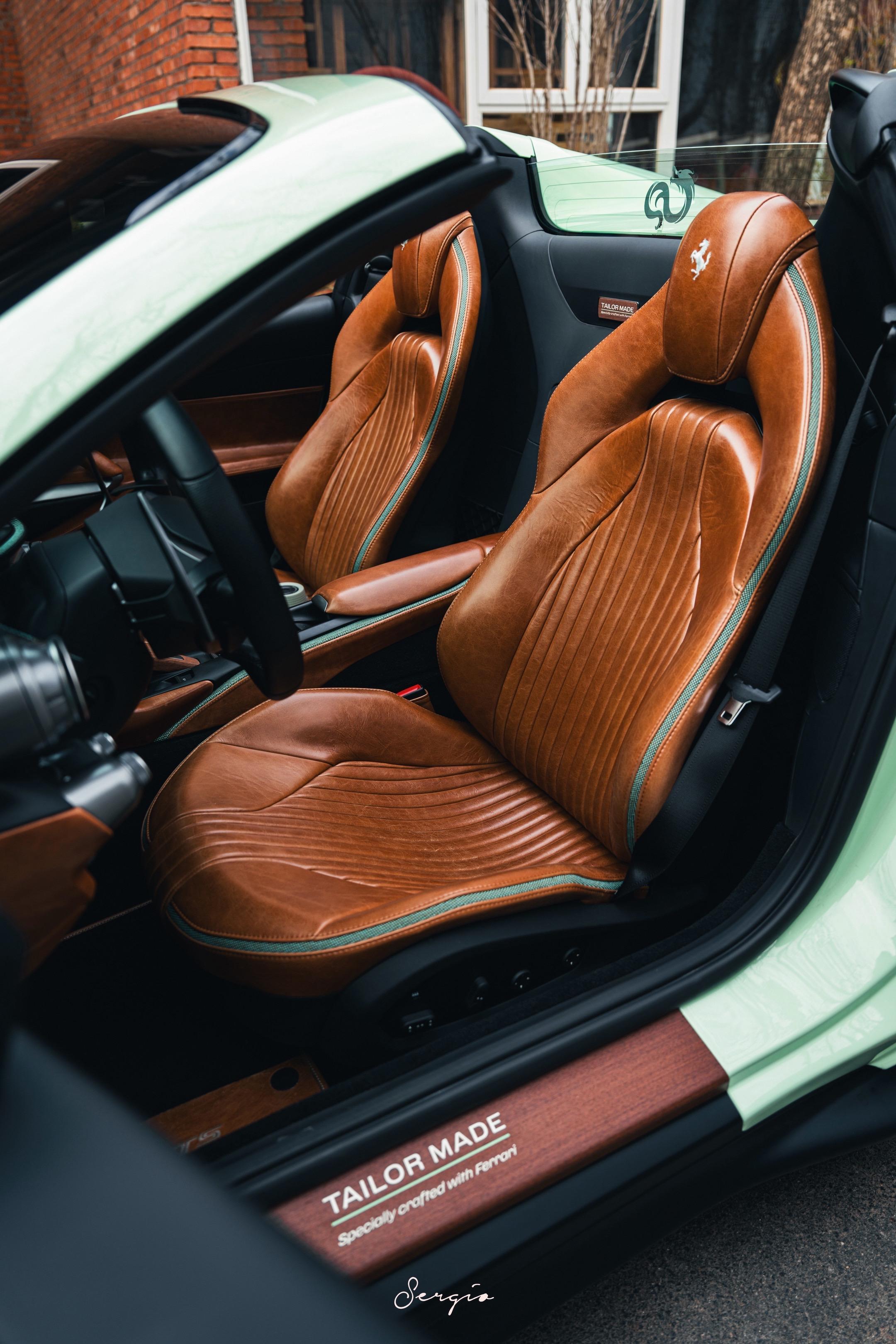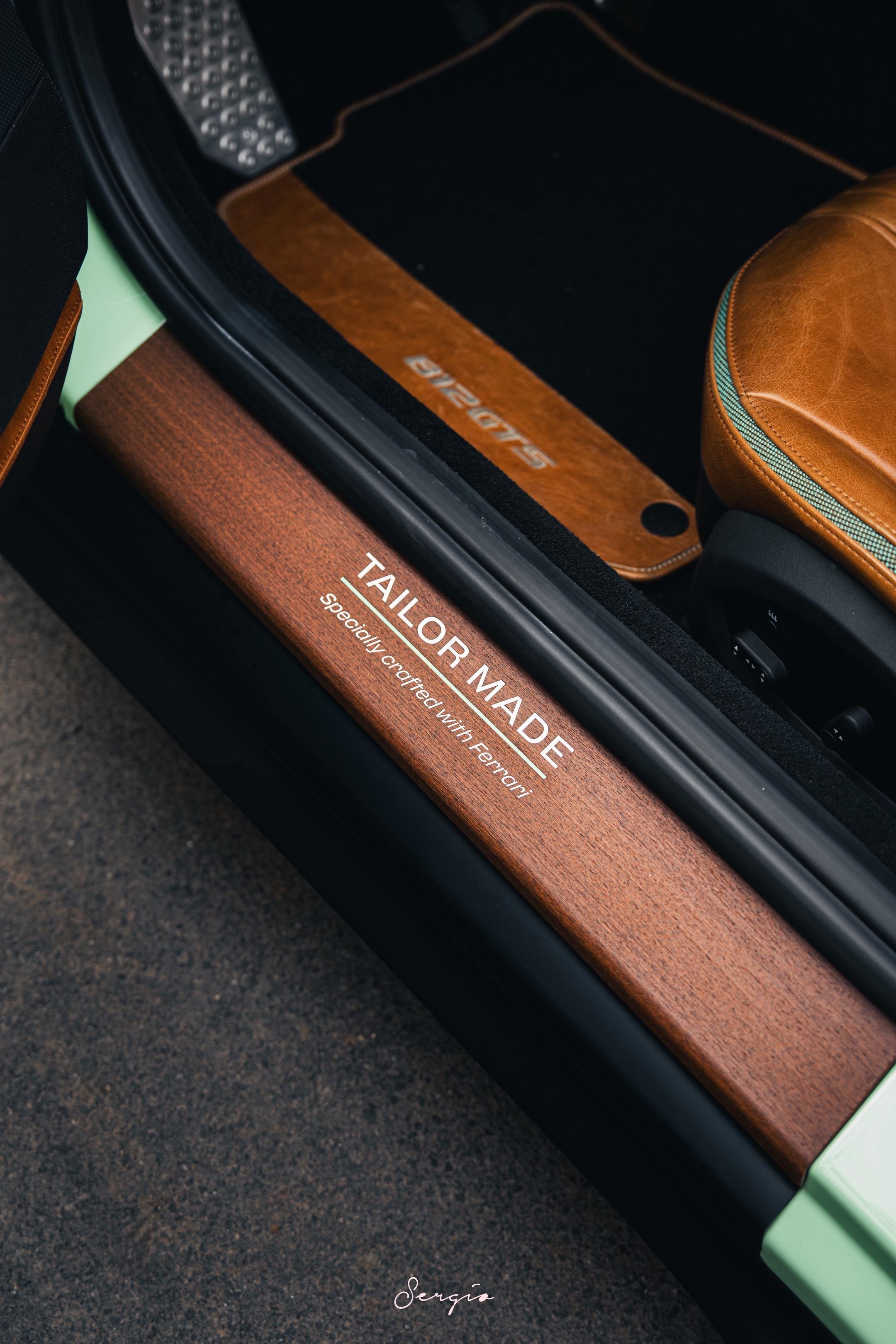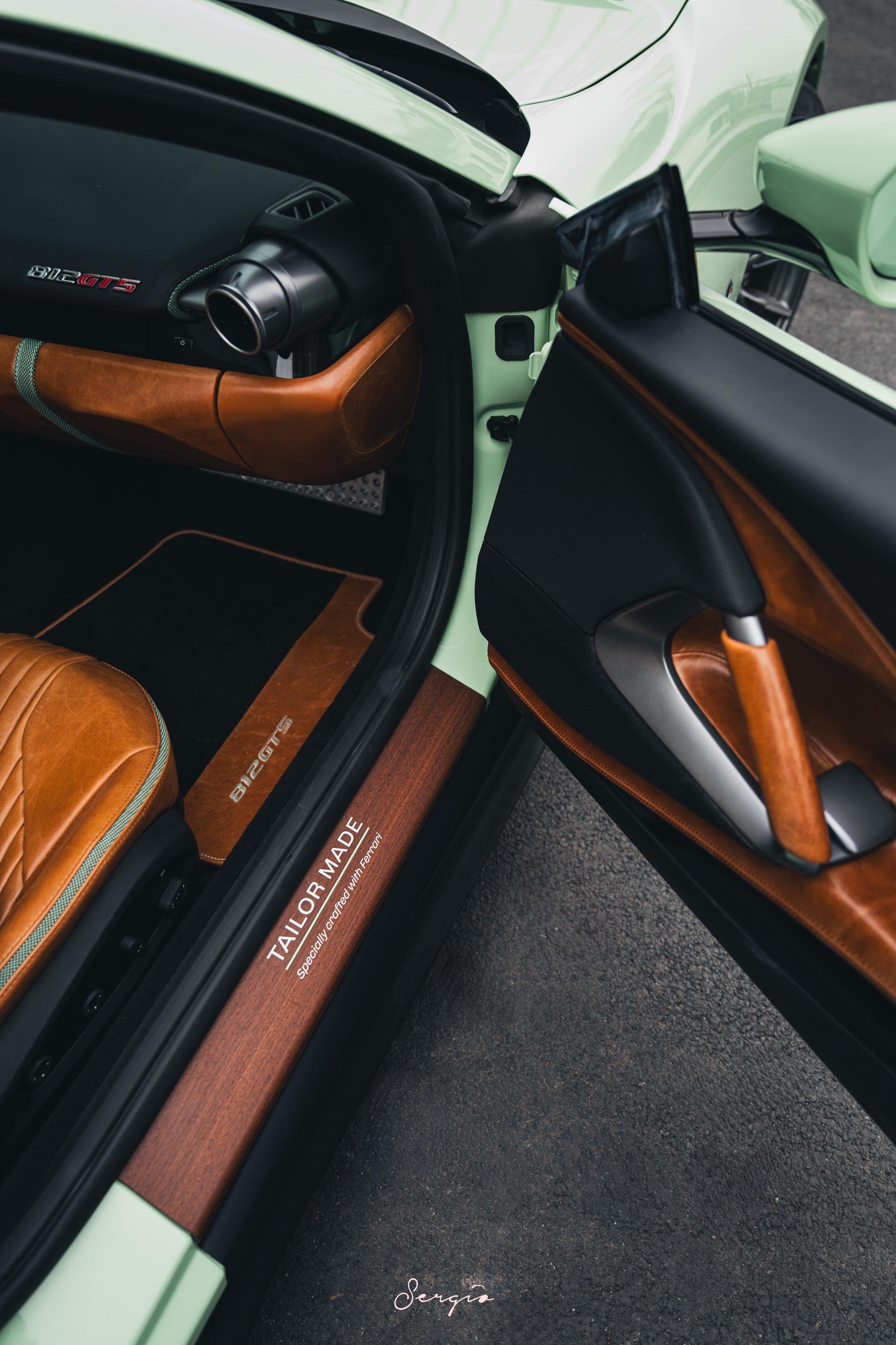 国内最好看的812GTS之一。终于能有机会拍摄了这台国内最完美之一的812 GTS,Verde Pallido,牛油果色配上棕色油皮内饰,很老钱,大胆,却又俏皮的搭配,妥妥的Top Spec。而且不仅Spec好看,整车也有很多的细节,例如木质的Tailor Made标识,木质的门槛迎宾条,内饰的饰条甚至都是牛油果配绿色,太完美了!