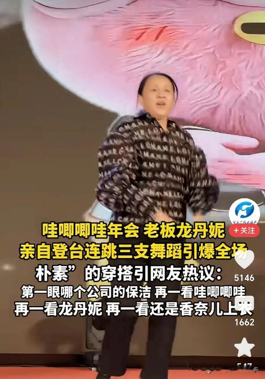 看得出来这个字母衬衣是几万块钱的香奈儿吗? 恕我眼拙,穿在身价十亿的富婆身上,丝毫没看出来这衣服洋气在哪,时尚在哪?这位女士可不是农村大集上的无名大妈,她可是娱乐圈鼎鼎有名的选秀教母龙丹妮,妥妥的职业女性,曾经迷的李维嘉为她茶不思饭不想,暴瘦抑郁的那位,如今素颜扎个马尾在公司年会上跳舞,立马引得网友高度关注,大家的关注点不是她跳的舞有多好看,而是她身上穿的黑色上衣被眼尖的人看出来,这是专柜最新款,香奈儿同类型的满印logo真丝衬衫,专柜售价通常在 ¥30,000 - ¥40,000 人民币区间。