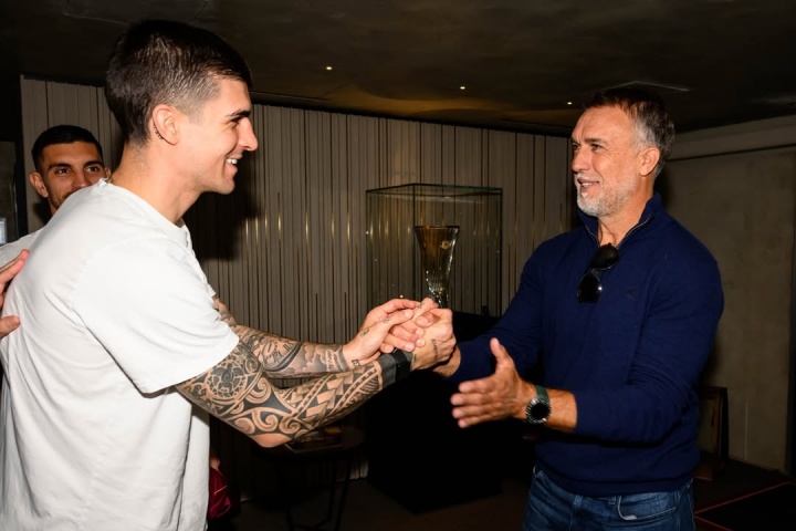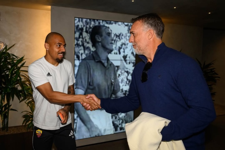 罗马官方晒出照片,巴蒂与加斯佩里尼、拉涅利、迪巴拉等人寒暄。