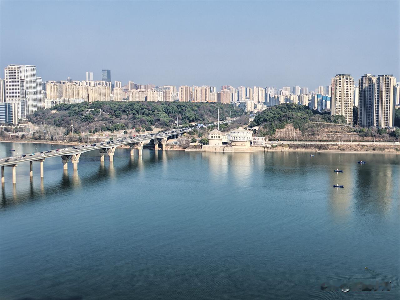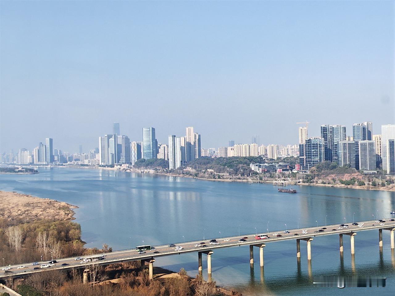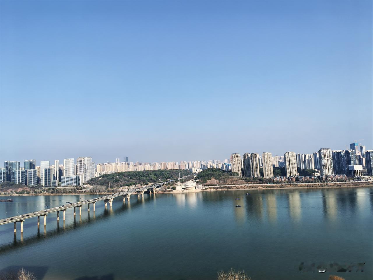 长沙今天下午天气真是不错,晴朗的天空下,湘江水面波光粼粼,高楼大厦倒映在水中,构
