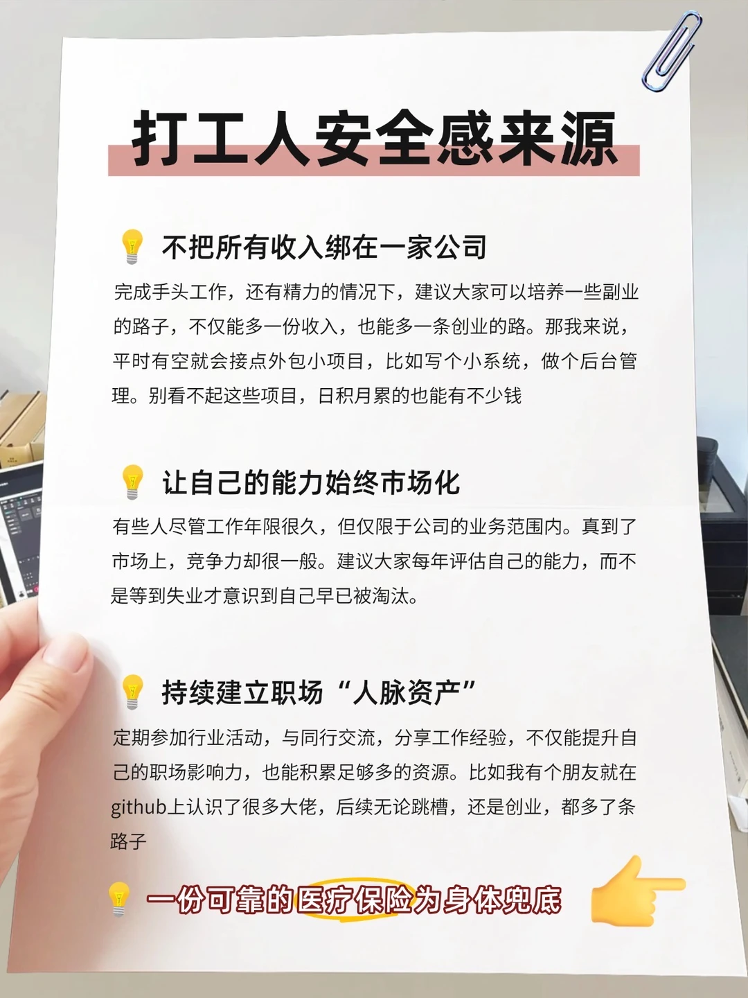 👉图2就是这些年我自己总结的,能提升打工人安全感的法子