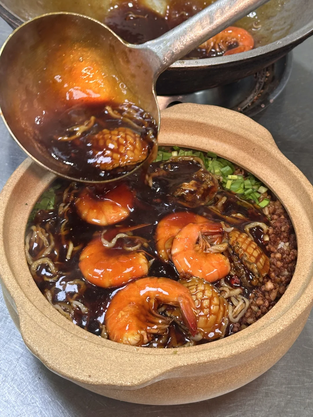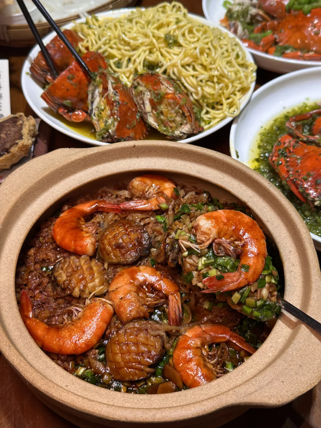 海鲜焗饭,米饭吸满海鲜酱汁,真的很下饭,大虾和鲍鱼都很新鲜!