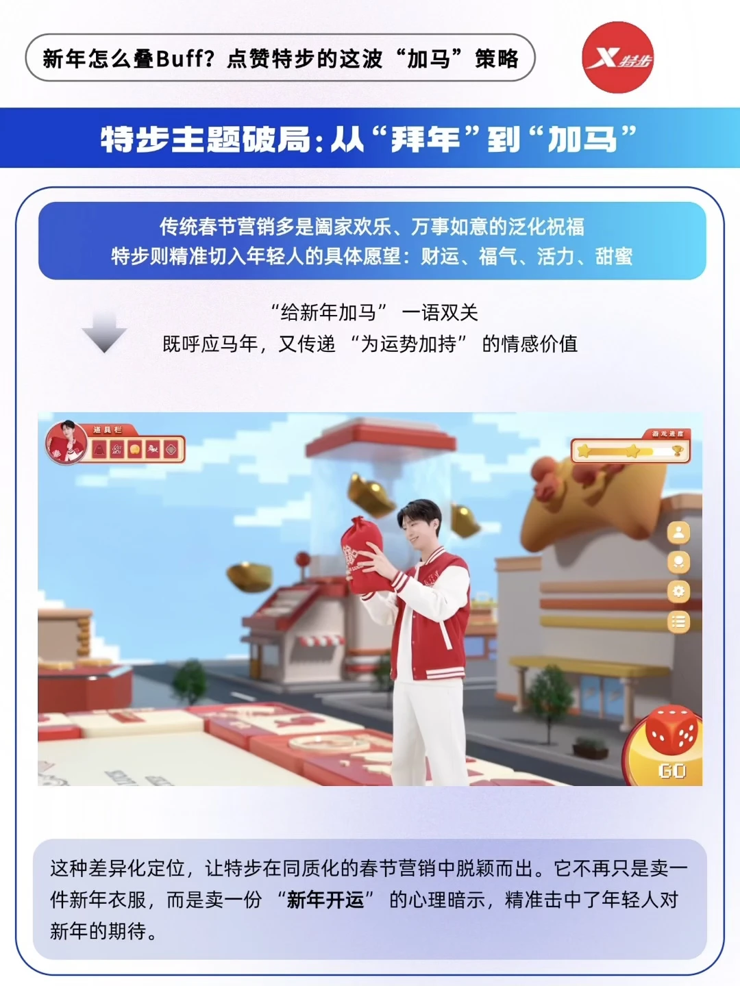 从主题破局到场景渗透,再到产品焕新,这一次,特步用「加马」的巧思,让运动品牌的春节营销,有了更鲜活的年轻表达[派对R][派对R][派对R]
