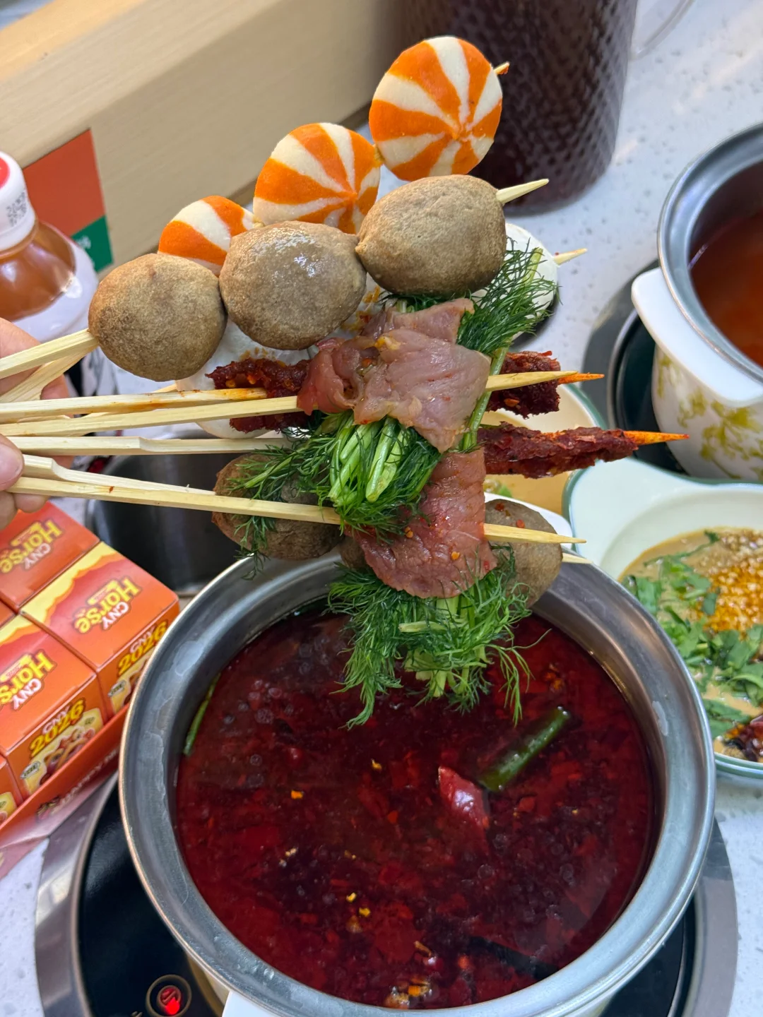 昨晚去温榆河看鱼灯,冷得直搓手🏮 朋友看附近有家清真旋转小火锅 本来是浅尝一下,结果直接吃美了!! - 🍲一人一锅,7种汤底 番茄锅浓郁挂汁、麻辣锅香真的还好吃! 🌪旋转台哗啦啦转 牛羊肉、毛肚、鸭血、时蔬…… 想吃啥拿啥,不用等不用凑 - 旋转台菜品超丰富,新鲜荤素、丸滑、时蔬随便拿,自取模式超方便,社恐也能轻松干饭,完全不浪费~ - 💰人均40+,轻轻松松扶墙出!吃完浑身暖乎乎,接着逛灯会春节不打烊太nice~ 宝子们来玩,锁死这家就对了! - 📍清真咕噜转旋转小火锅