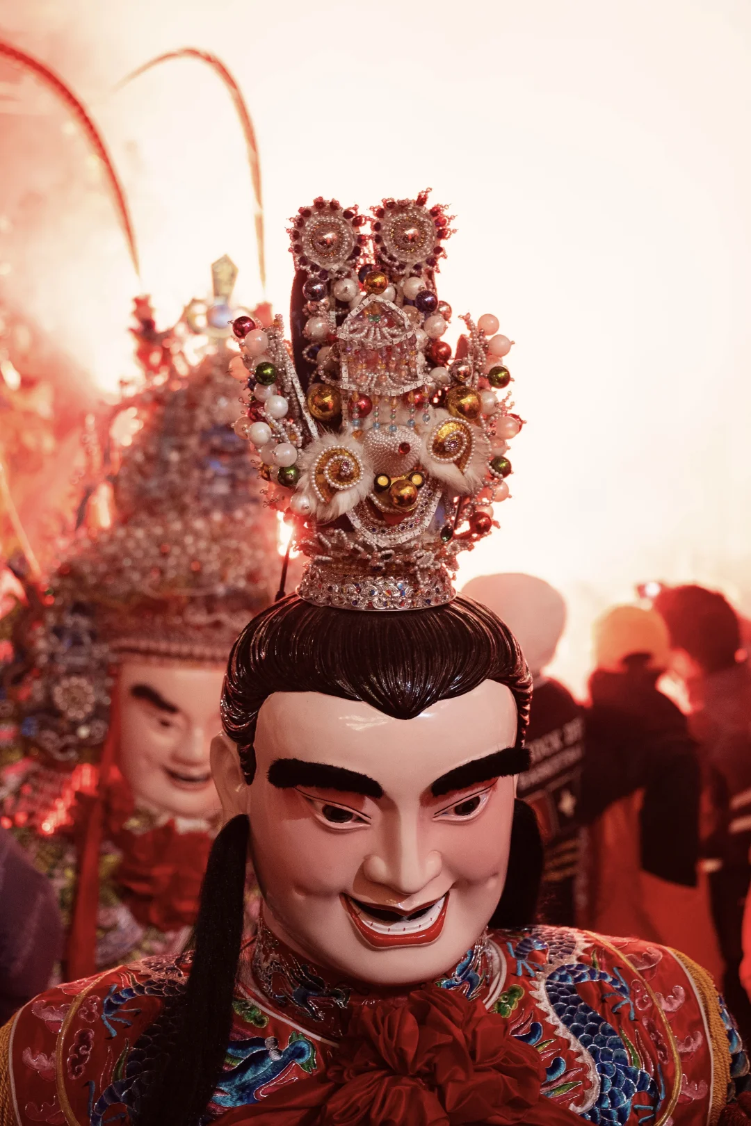 游神的神明每个头桶都很有特色,把眼睛、眉毛、胡须、表情都做得活灵活现,怒目显威严,微笑显慈祥,每尊神都有性格。游历其中,便觉得神不是在天上,神被人爱着的时候,就在人间。