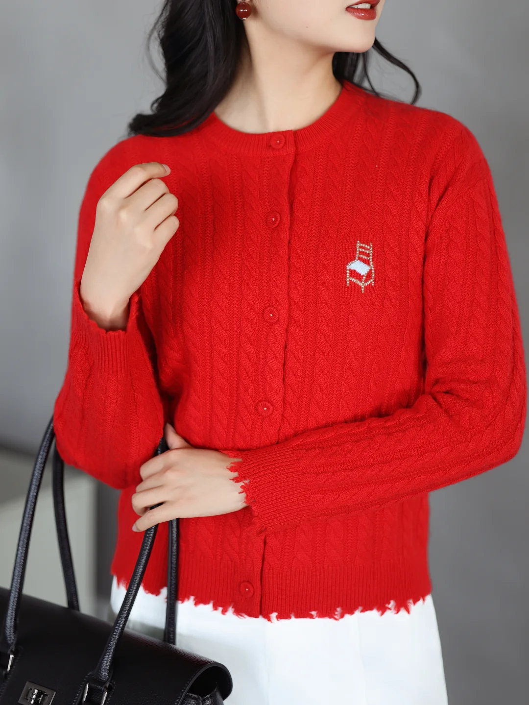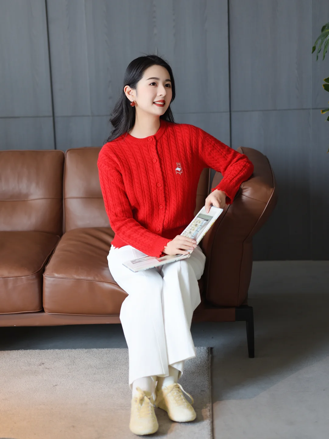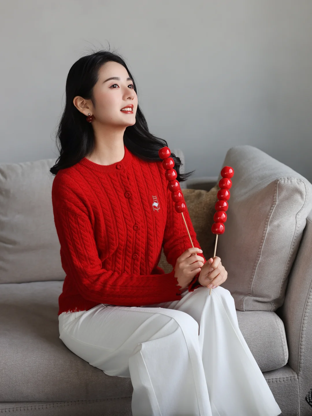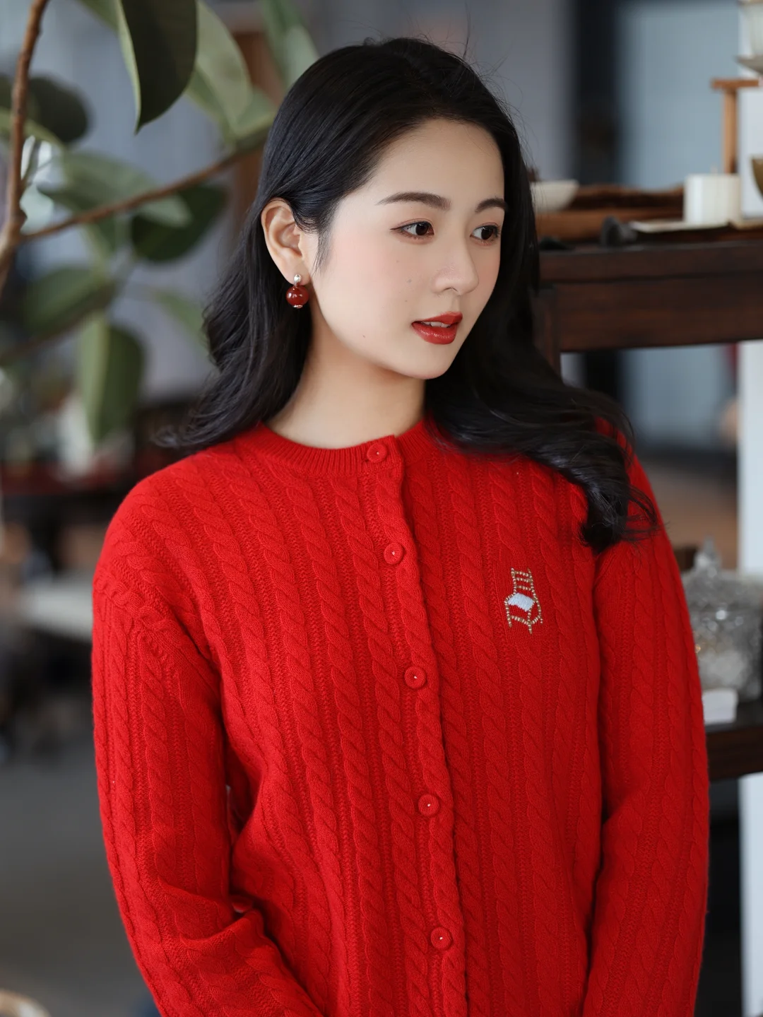 正红色山羊绒开衫拉满节日氛围