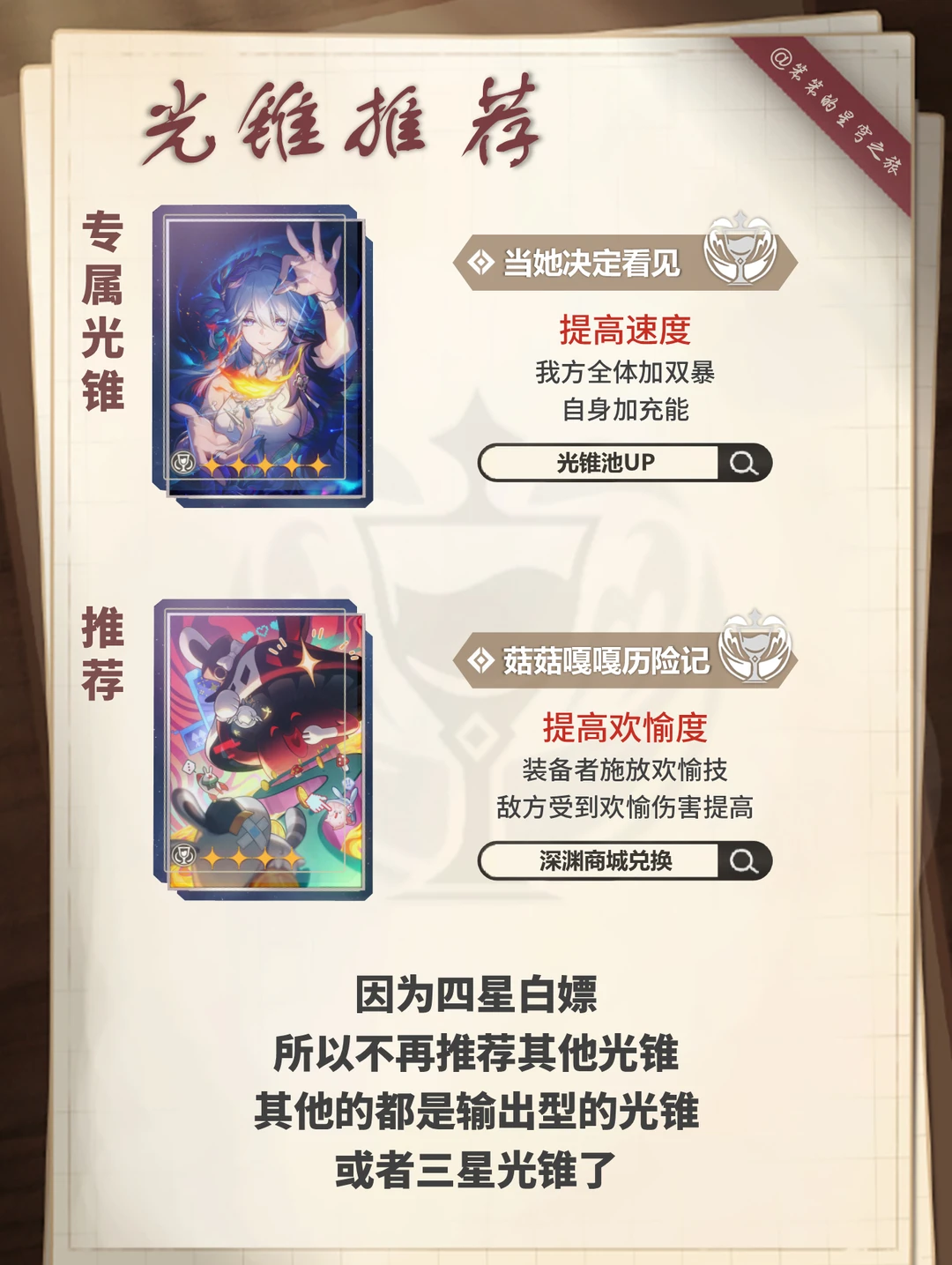 🐱大家好,我是笨笨的铲屎官 今天给大家带来的是爻光的培养攻略 爻光作为欢愉体系的专属辅助 强烈建议抽取 当然之后还需要抽取欢愉体系主C 第一个欢愉主C就是我们的火花 爻光武器可以抽专武 也可以用商城兑换的辅助欢愉武器