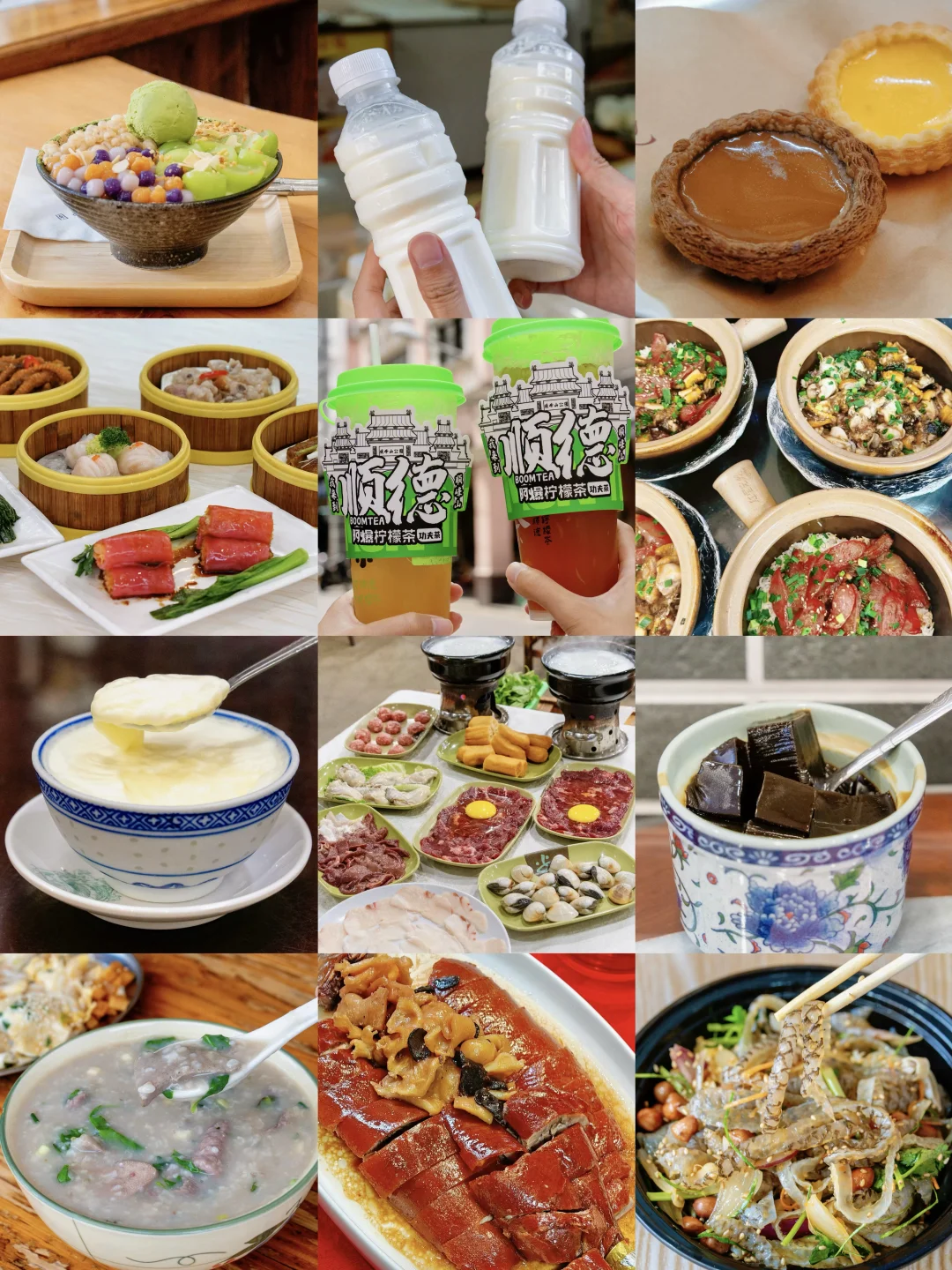 🍜顺德美食:粥底火锅、烧鹅、煲仔饭、鱼皮、水牛奶、双皮奶、民骏龟苓膏等