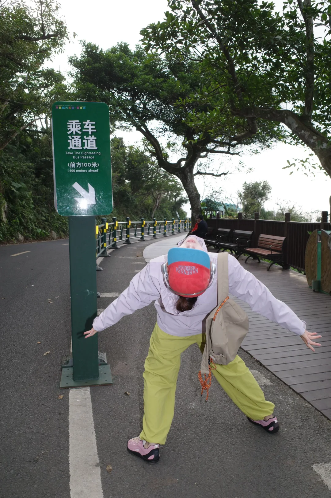 坐上小观光车,盘山道一点点上,简直太治愈了,已经按耐不住了我的快乐,晴天的铜鼓岭简直太好看了,稳稳出片,来这里真的适合一些户外穿搭,高级感直接拉满。