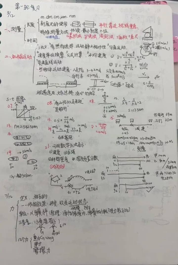 第一张笔记,上面有五六种颜色的笔迹,他说当时整理了重点,标了不同颜色,拿在手里一看,感觉非常满意。