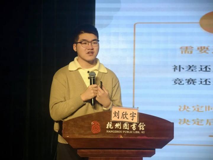 刘欣宇,杭州第十四中学毕业生,上海交通大学医学院大二学生。候场时,他和汪君宪一见面就加了微信,说都是医学生,可以多联系。他娓娓道来,分享的内容