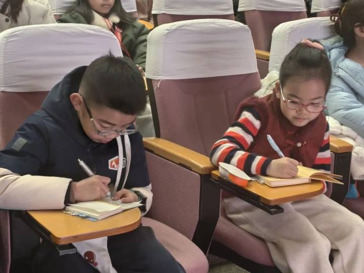 好多小学生来参加活动,还带了笔记本现场记录,听得特别认真。孩子没空,有些家长就自己来现场听讲,有位外婆戴着老花镜,笔记记了好几页,说要带回去给在读初中的外孙看看:“我觉得几个孩子都讲得特别好,外孙目前遇到的许多问题,他们都给了解决方法。”