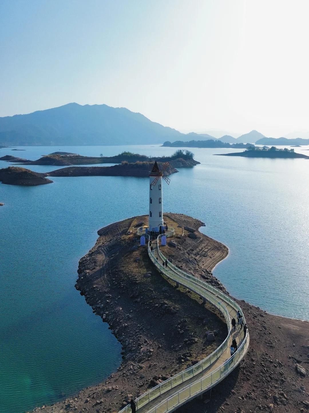 4️⃣ 天气好🉑冲天屿山,扶梯上山不费力,山顶俯瞰全湖,日落时湖面金灿灿,娃能看很久,老人也轻松。