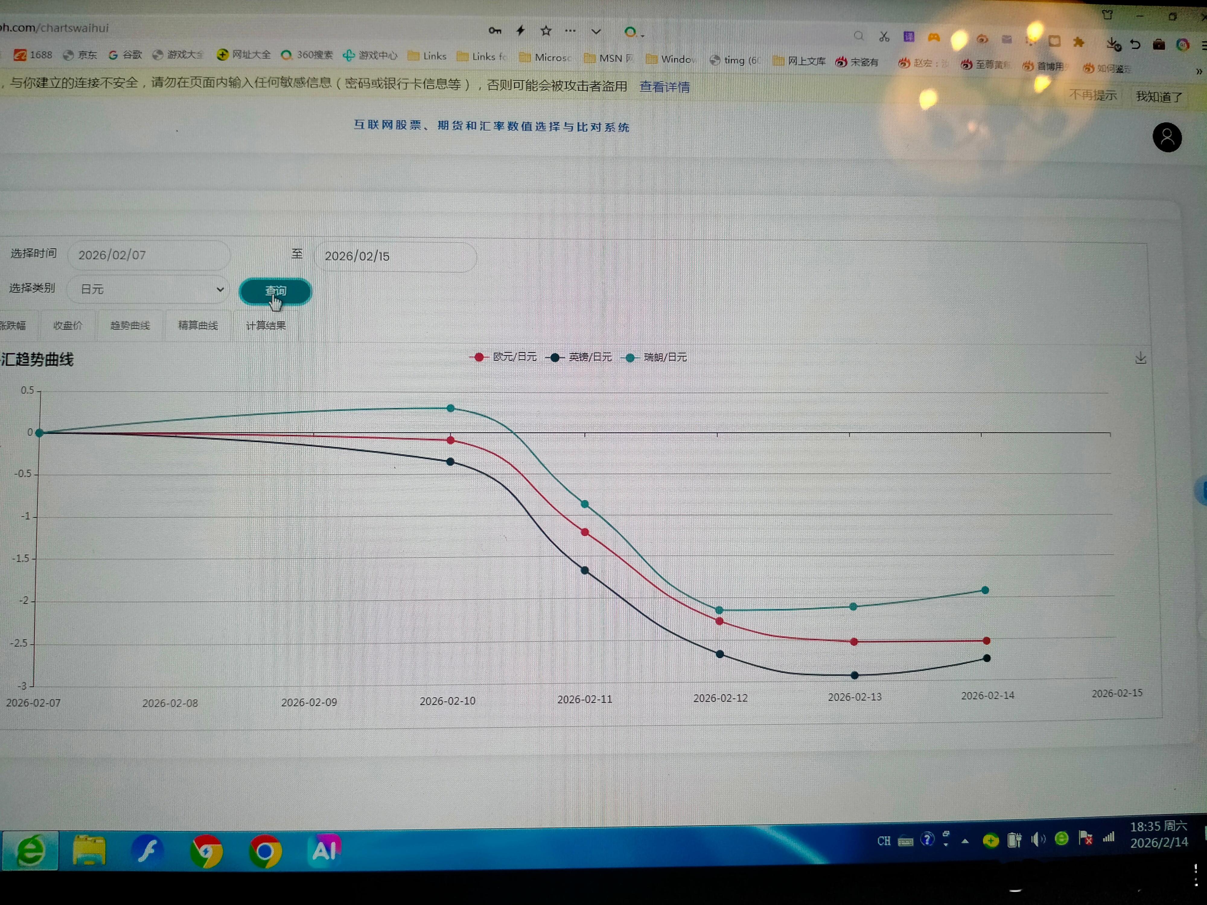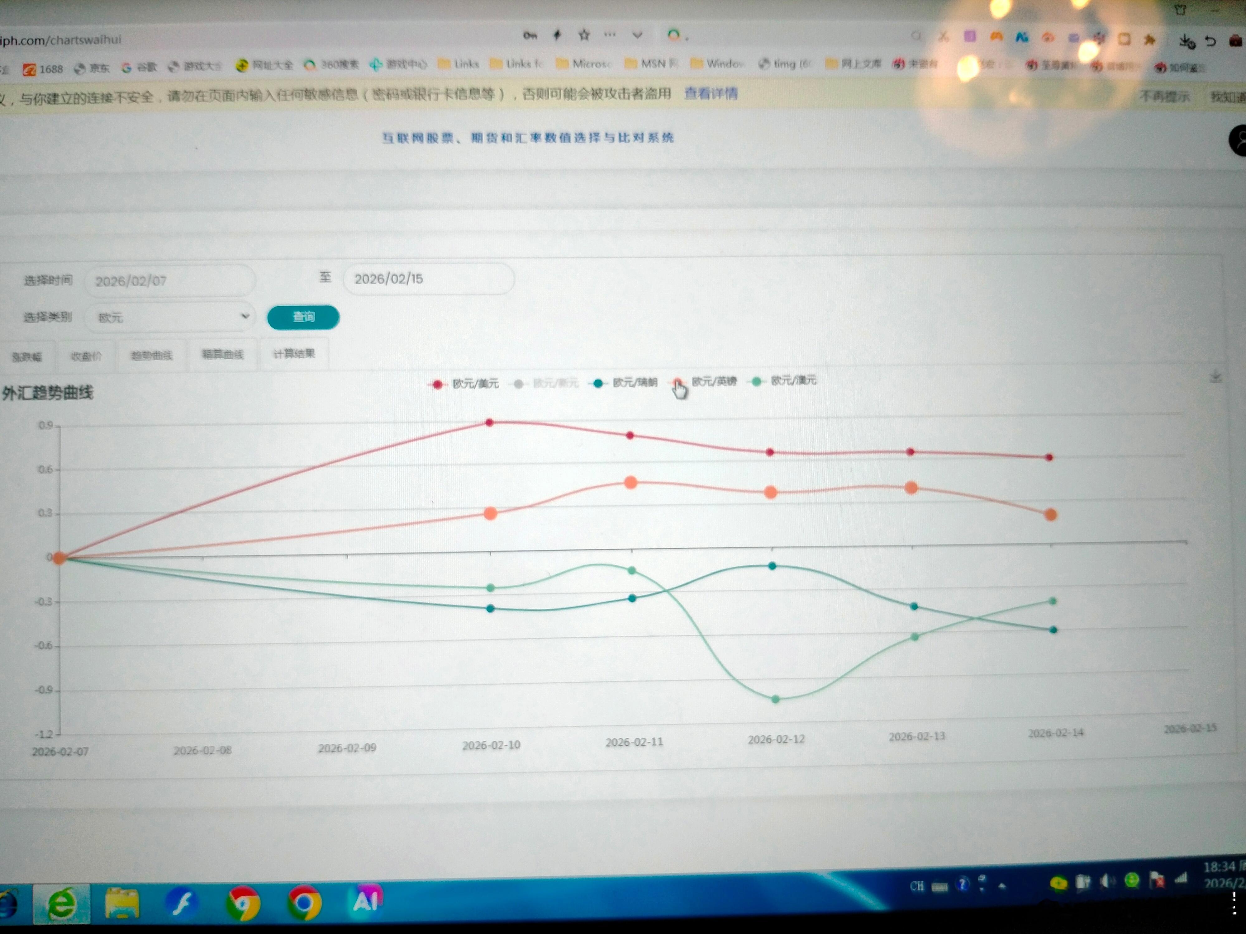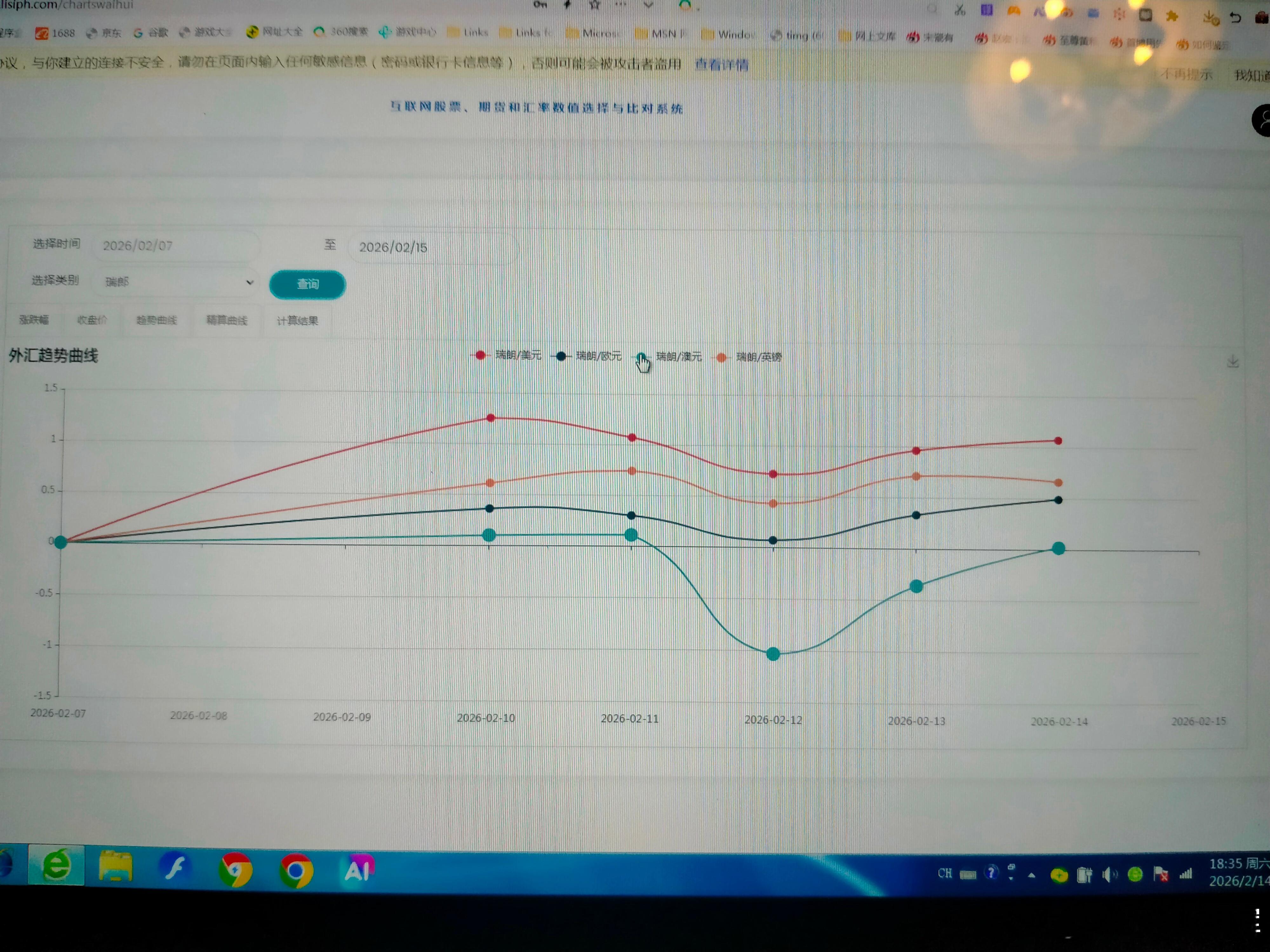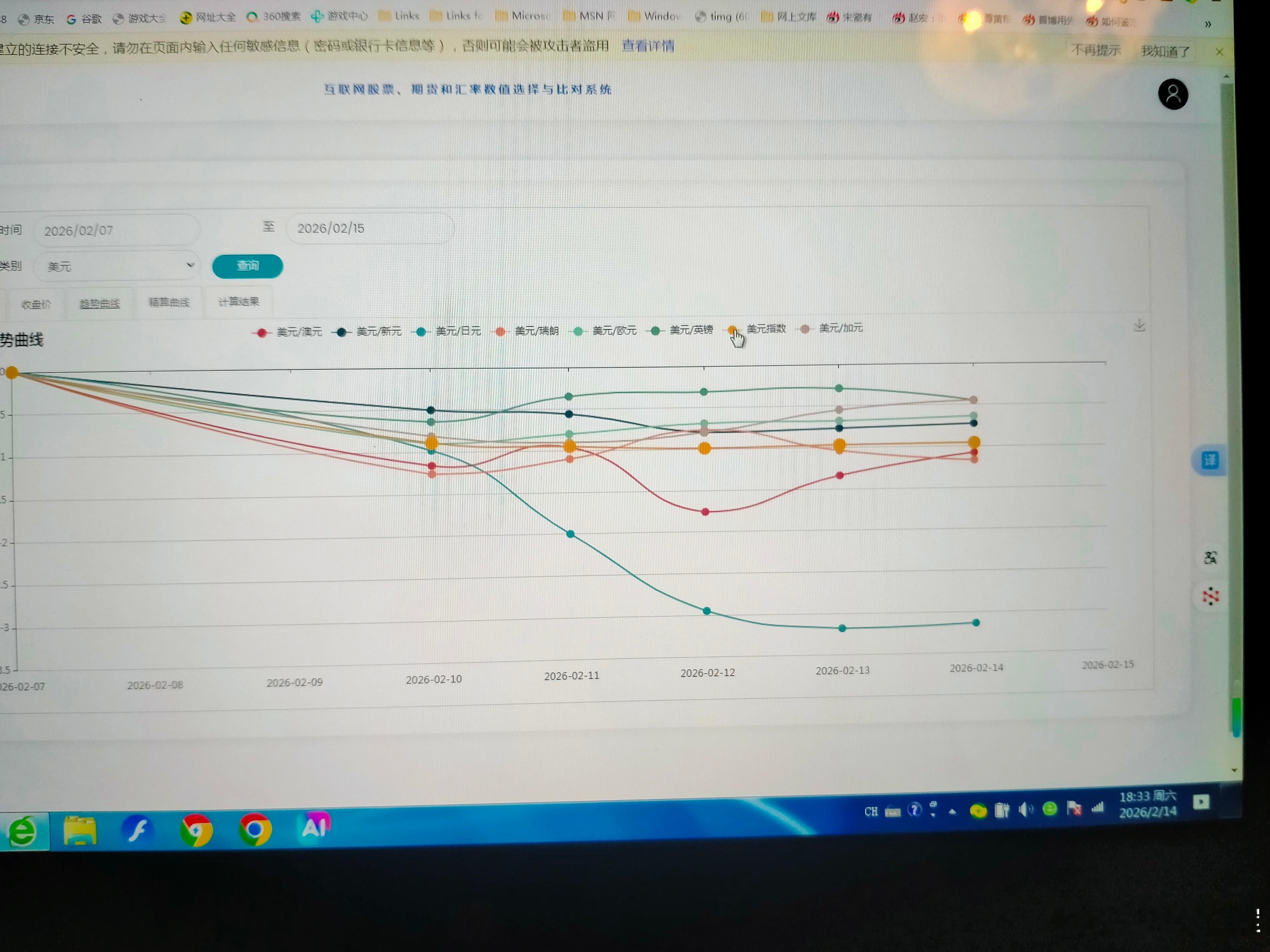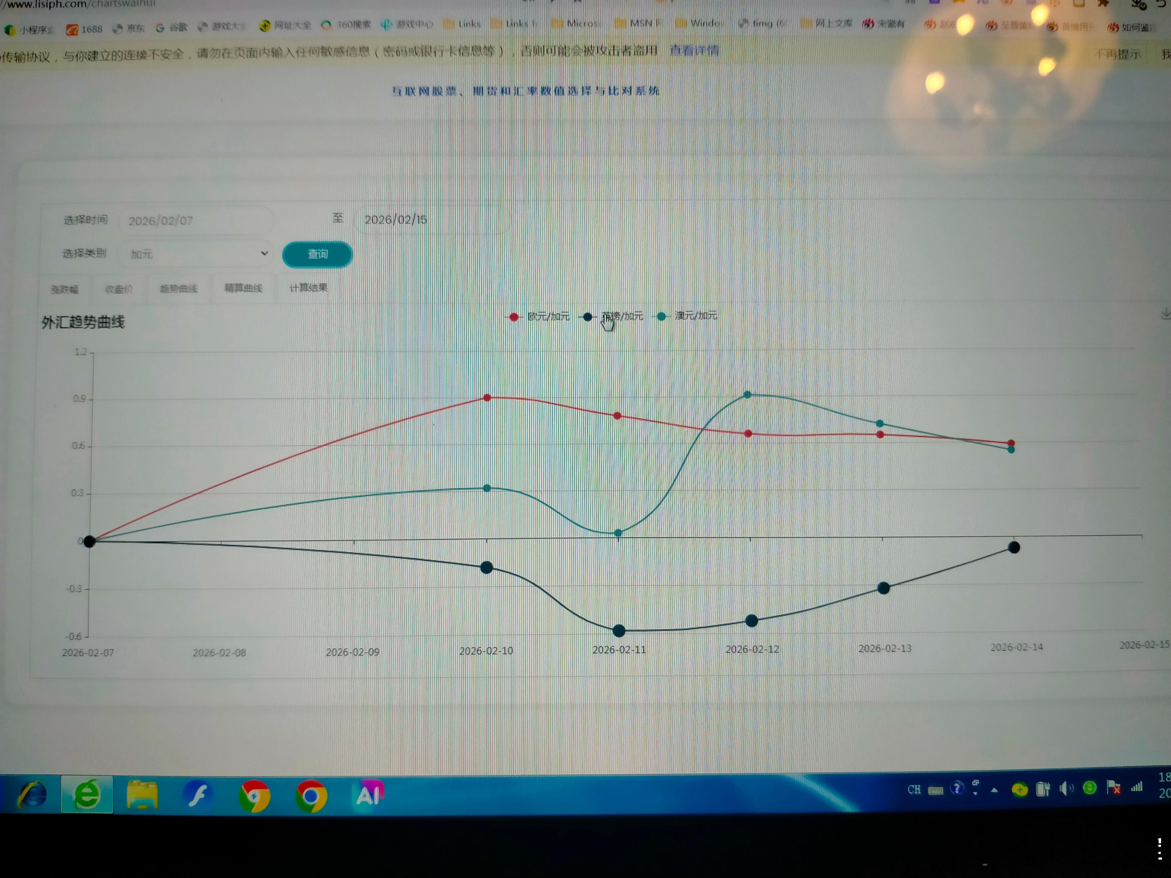 本周主要汇率走势 本周日元一骑绝尘,美元一落到底,其他几个主要币种粘合在一起。 图一是美元本周的涨跌幅曲线,基本上算是弱势了一周,美元像样的上涨。图二是趋势曲线,兑其他几个主要币种都是下跌的,兑日元跌幅比较大,兑其他几个主要币种的跌幅都不大。还是比较弱势。 图三是澳元本周的趋势曲线,本周又冲了一个高点,随即回落。澳元在高位区域总是有风险的吧? 图四是欧元本周的趋势曲线,图五是英镑本周的趋势曲线,图六是瑞郎本周的趋势曲线,瑞郎最强,英镑最弱,欧元比较平稳,欧洲三个主要币种主要是英镑和瑞郎浮动多一点,但似乎都持续性不强。 图七是兑日元的趋势曲线,受选举结果的影响,日元大涨,可能短期延续一下吧? 图八是兑加元的趋势曲线,加元比较弱。 图九是正向和反向态势图,日元在高位区域了,还是要注意风险了。 春节快乐!