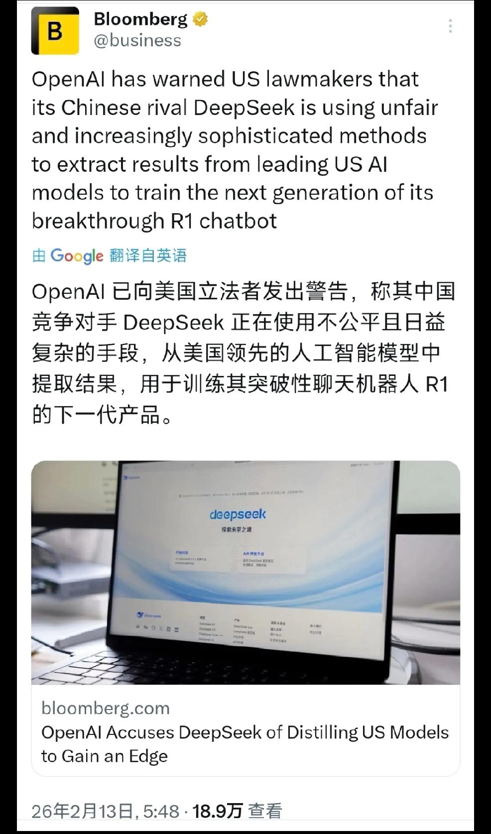 近日,三条美国针对中国高科技企业的信息,显示着非同寻常的举动: 第一条OpenAI已向美国立法者发出警告,称其中国竞争对手DeepSeek正在使用不公平且日益复杂的手段,从美国领先的人工智能模型中提取结果用于制造期突破性聊天机器人R1的下一代产品。 第二条,Seedance2.0引爆海外,美国还在追着DeepSeek抹黑,从2025年春节以来,美国政府对DeepSeek的打压抹黑,已持续了一年之久。 第三条,美国好莱坞正式向中国AI宣战,拥有百年历史,20万会员的美国演员工会,发表严正声明:炮轰中国字节跳动AI视频模型Seedance2.0,指控其大规模侵权,未经授权“偷取”会员声音与肖像。 个人认为:不能等闲视之,要早做准备,不但企业运用法律保护自己,还要寻求政府支持,因为这不是商业行为。 因为美国企业无法使用正常的商业竞争手段,无法达到打压中国企业的目的,只好寻求美国政府的长臂管辖,以便于美国企业控制中方企业,非法占有中方企业的资产与技术。 个人认为:美国政府必然使出老套路,运用所谓的国家安全的名义,长臂管辖中国企业。 美国国内法管不着中国企业 未雨绸缪,我们预判了— 美国人的预判