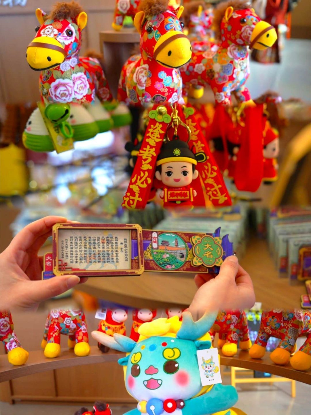 🍢逛累了直接冲大名集荟地道小吃吃到撑!二毛烧鸡香嫩脱骨,五佰居香肠咸香入味,还有饸饹、烧麦、焦烧饼,每一口都是正宗大名味,碳水快乐直接拉满~ 🎁吃饱喝足再去大名礼物店淘好物 萌趣冰箱贴、古风玩偶、特色文创琳琅满目,挑几样当伴手礼超合适,逛到根本停不下来!