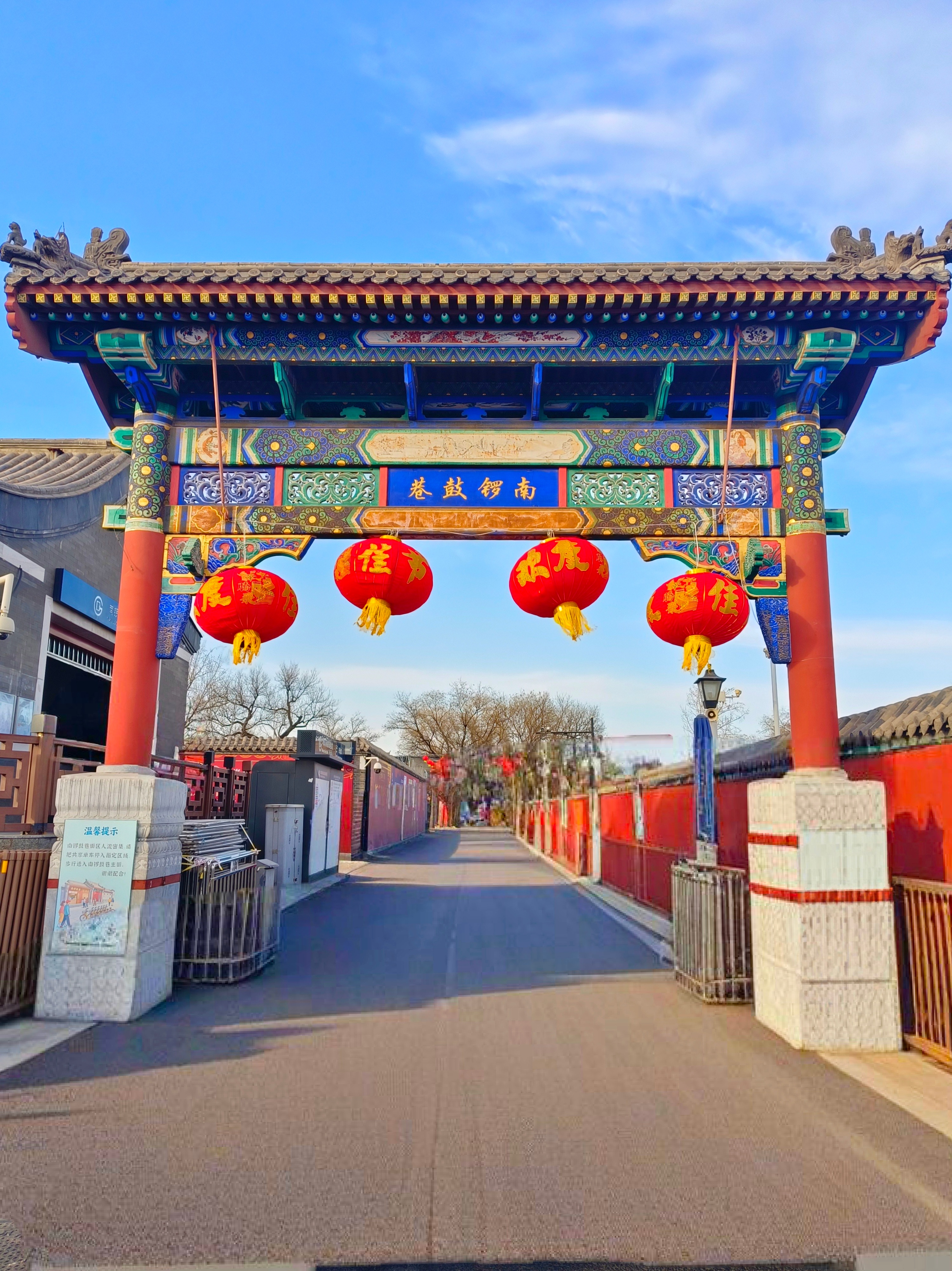 - 菊儿胡同:荣禄家祠与圆通寺比邻而居,荣禄作为晚清重臣,其家祠体现了儒家的宗法观念,而圆通寺作为佛教寺院,儒与释的对话,在这里延续了数百年,也反映了老北京多元的文化生态。三、向北到底:钟鼓楼下的市井烟火走到南锣鼓巷的北端,便到了鼓楼东大街。这里的黄瓦增福财神庙,红墙黄瓦,是老北京人祈福求财的地方,每逢年节,香火鼎盛。而不远处的鼓楼与钟楼,则是元大都以来的报时中心,始建于元代至元九年(1272年),鼓楼击鼓定更,钟楼撞钟报时,全城百姓都以此作息,是元大都城市管理的重要标志。如今,钟鼓楼依然矗立,只是报时的钟声,换成了游客的惊叹。从时间博物馆到开明美术馆,从方砖厂69号炸酱面到大跃啤酒,历史与现代在这里完美融合,老北京的市井烟火气,在这条街上依旧鲜活。