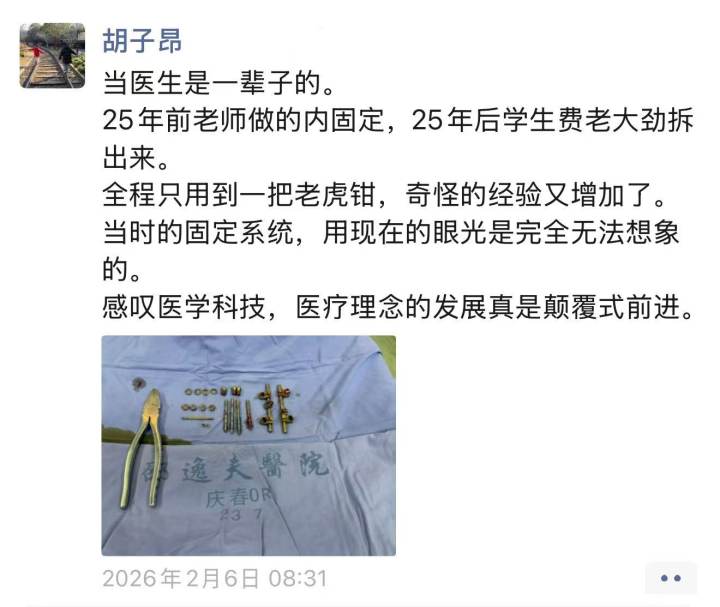 这条朋友圈引来不少点赞,胡子昂在术前请教过的骨科前辈,更是留言点赞。