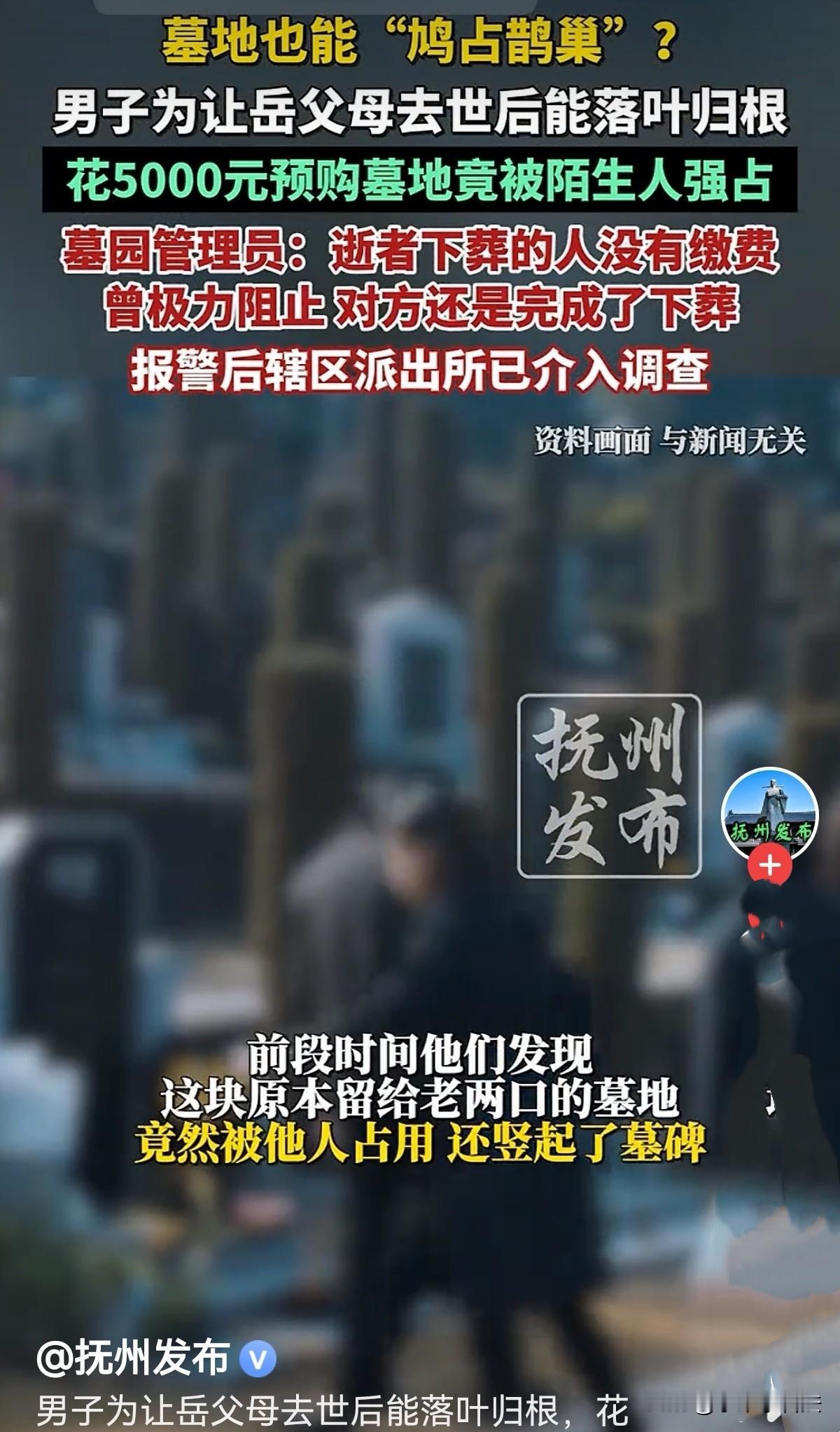 “真丢人!连这都抢?”江苏扬州,80岁的老人为百年之后的归处筹划,7年前就选了块随心的墓地,儿女们为让他们安心,花5000元提前买了下来。两老人身体康健,一直空置着。谁知,前段时间,老人女婿突然发现,墓地竟被别人侵占了,还竖起了墓碑。墓地管理员说占用者未提前沟通,也没有缴费,他们差点发生冲突,也未阻止得了。管理员报警,可对方强硬地说愿意花钱将这块墓地买下来!墓园已无空余墓地,老人坚决不同意,警方介入调解。网友:这都明抢了,还调解啥? 闵先生的岳父岳母都是80多岁的老人,一辈子踏实过日子,到了这个年纪,心里最惦记的就是百年之后的安身之处。 2019年,老两口逛了多家墓园,竟一眼看中了一块位置、朝向都合心意的双穴墓地,想着提前备好,不给子女添乱。 闵先生和家人商量后,当即花5000元全款买下,手续齐全、凭证在手,这墓地明明白白就是老两口的专属位置。 买下之后,老人心里踏实多了,时不时还会让子女陪着去墓园转一转,看看自己未来的“家”! 他们念叨着:人这一辈子,图的就是个安稳,老了能有个归宿,走了能入土为安。 在老人心里,这块墓地就是他们落叶归根的最后归宿。 闵先生一家也从没多想,只等老人百年之后,顺顺利利让他们安息,谁也没料到,平静的日子会被这样一件荒唐事打破。 前段时间,闵先生想着去墓园打理一下墓地,可一走到目的地,整个人都懵了!怎么墓地上已立起了墓碑? 血压瞬间往上冲,原本空荡荡的墓地,此刻已经立起了陌生的墓碑,他几番查看,泥土翻新,明显是刚下葬不久。 他不敢相信自己的眼睛,反复核对位置和编号,确认无误后,一股怒火和委屈直冲头顶。 7年前就为两老人提前买好的备用墓地,居然被陌生人一声不吭强行占用,不仅把人下葬了,还直接竖好了墓碑,好好的自留地,转眼成了别人的“地盘”,简直是闻所未闻! 气愤不已的闵先生立刻找到墓园管理员,一问之下,更是让人火大。 管理员说,占用墓地的是当地一位村民,此人既没有和墓园提前沟通,也没有缴纳任何费用,下葬当天,工作人员发现后第一时间冲上前阻拦,苦口婆心讲道理,说这墓地早已售出,不能私自使用。 可对方根本不听,态度强硬,双方争执不下,差点发生肢体冲突。 即便墓园工作人员极力阻止,对方还是不管不顾,强行完成了下葬,把事情做得板上钉钉。 后来管理员还报了警,占用墓地的一方强硬地说,愿意花钱把这块墓地买下来。 可这话在闵先生一家听来,简直是天大的笑话。 先不说这墓地是老人盼了多年的归宿,单说墓园里早就没有空余墓地了,整个墓园一席难求,老两口再也找不到合适的位置。 闵先生坚决不同意,他要的不是钱,是自家的合法权益,是老人入土为安的底线,凭什么自己花钱买的东西,要被别人强行抢走,还要忍气吞声? 两位80多岁的老人得知消息后,气得吃不下饭、睡不着觉,一辈子没跟人红过脸,没遇过这么不讲理的事。 一想到自己备好的归宿被人霸占,老人心里又委屈又绝望,整天唉声叹气,精神状态差了很多。 闵先生看着老人难受,心里更是刀割一样,他只想为家人讨回公道,把属于自己的墓地要回来。 事情闹大后,当地镇政府民政科负责人也出面回应,明确表示这块墓地确实被村民强行占用,属于违规侵占他人合法购买的墓位。 目前,派出所已介入调解,争取尽快给出公平合理的处理结果,维护闵先生一家的合法权益。 《民法典》第1165条第1款:行为人因过错侵害他人民事权益造成损害的,应当承担侵权责任。 《民法典》第1167条:侵权行为危及他人人身、财产安全的,被侵权人有权请求侵权人承担停止侵害、排除妨碍、消除危险等侵权责任。 闵先生一方已向墓园支付价款、合法取得墓地使用权,该财产性权益受法律保护。 占用者无合同、未缴费、未经同意强行下葬,主观过错明显,已构成财产侵权。 闵先生一方有权诉请:停止侵害、迁出棺椁、骨灰、拆除墓碑、恢复墓地原状、赔偿实际损失与精神损害。 入土为安是中国人最朴素的心愿,提前购置墓地也是很多老人的正常安排,合法合规、合情合理。 可一声不吭强占墓地、强行下葬的行为,不仅违背了公序良俗,更是侵犯了他人的财产权和精神权益。 有人说,那现在就是搬出来也属于二手墓了,已经破坏了风水,现在要在其它墓园买一个相同规格的赔给人家。 有人说,真丢人,连死都死不起?现代版的泼皮无赖,连墓地都抢,还有什么不能抢的!丢了八 辈 祖 宗的老脸啊! 还有人说,调解啥啊?非法侵占、侵权,有啥调解的?直接抓人! 对此您怎么看?