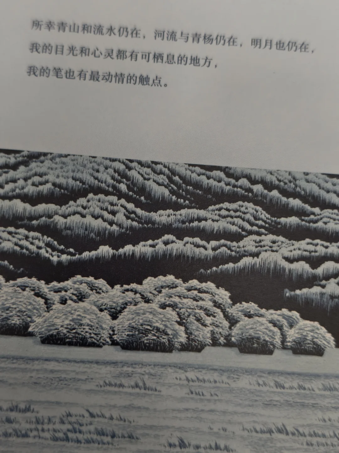 所幸青山和流水仍在,河流与青杨仍在,明月也仍在,我的目光和心灵都有可栖息的地方,我的笔也有最动情的触点。