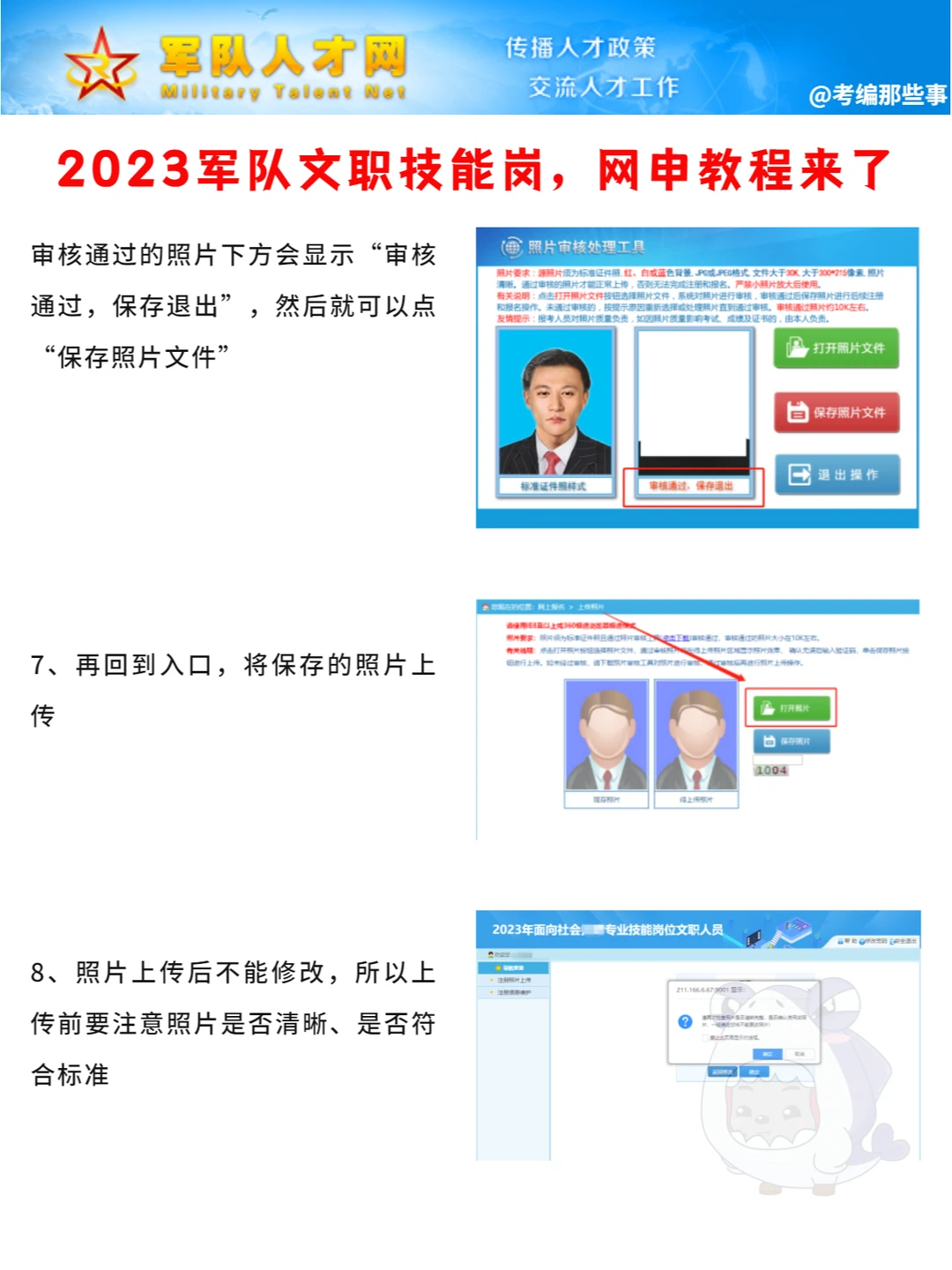 8、照片上传后不能修改,所以上传前要注意照片是否清晰、是否符合标准