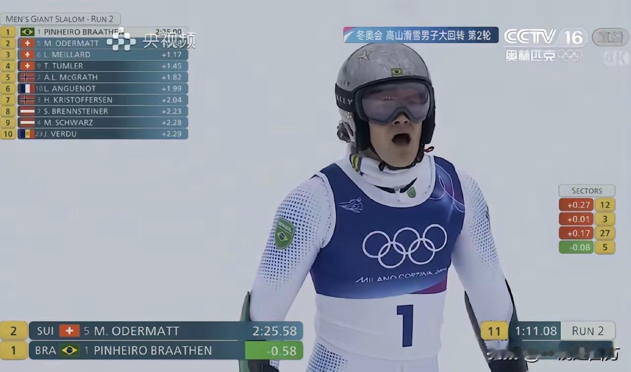 不可思议,处于热带雨林气候的巴西竟然拿到一枚冬奥会金牌,在米兰冬奥会高山滑雪男子大回转比赛中,巴西选手布劳腾以2分25秒00击败连续四个赛季世界排名第一的“大回转之王”瑞士名将奥德马特,获得巴西、也是整个南美洲的第一枚冬奥会金牌。中国队唯一参赛选手刘校辰最终获得第58名。