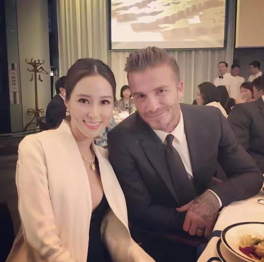 徐子淇和辣妹合影,一个保持一贯的微笑,一个一贯板着脸,两人表情都管理到位。