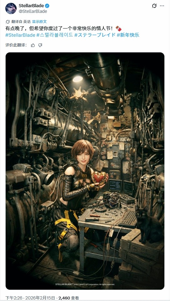 直播吧2月15日讯今日,《剑星》官方X账号发布动态,祝愿玩家们情人节快乐;同时,官方还在结尾附上了“新年快乐”的hashtag,向中国玩家致以新春祝福——