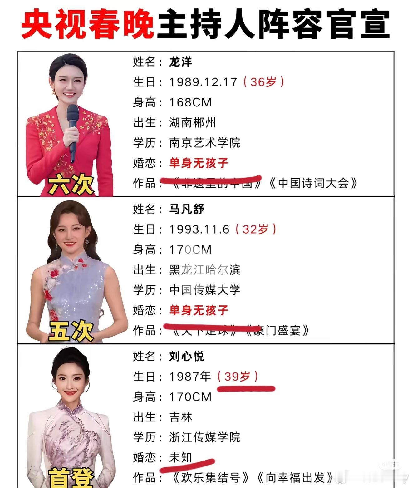 主持人确定了:任鲁豫、撒贝宁、尼格买提女主持这次是:龙洋、马凡舒、刘欣悦这个刘欣