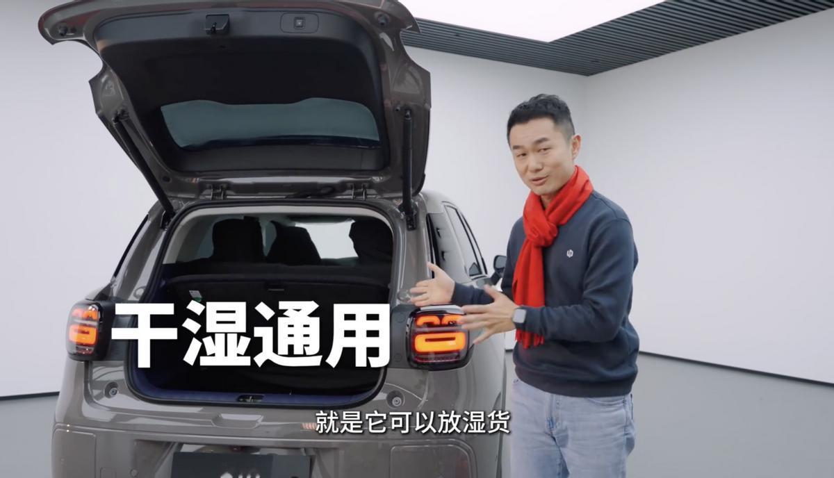 这款车后备箱也能干湿分离?   这两年,可湿水的电车前备箱咱们见多了,可湿水的后