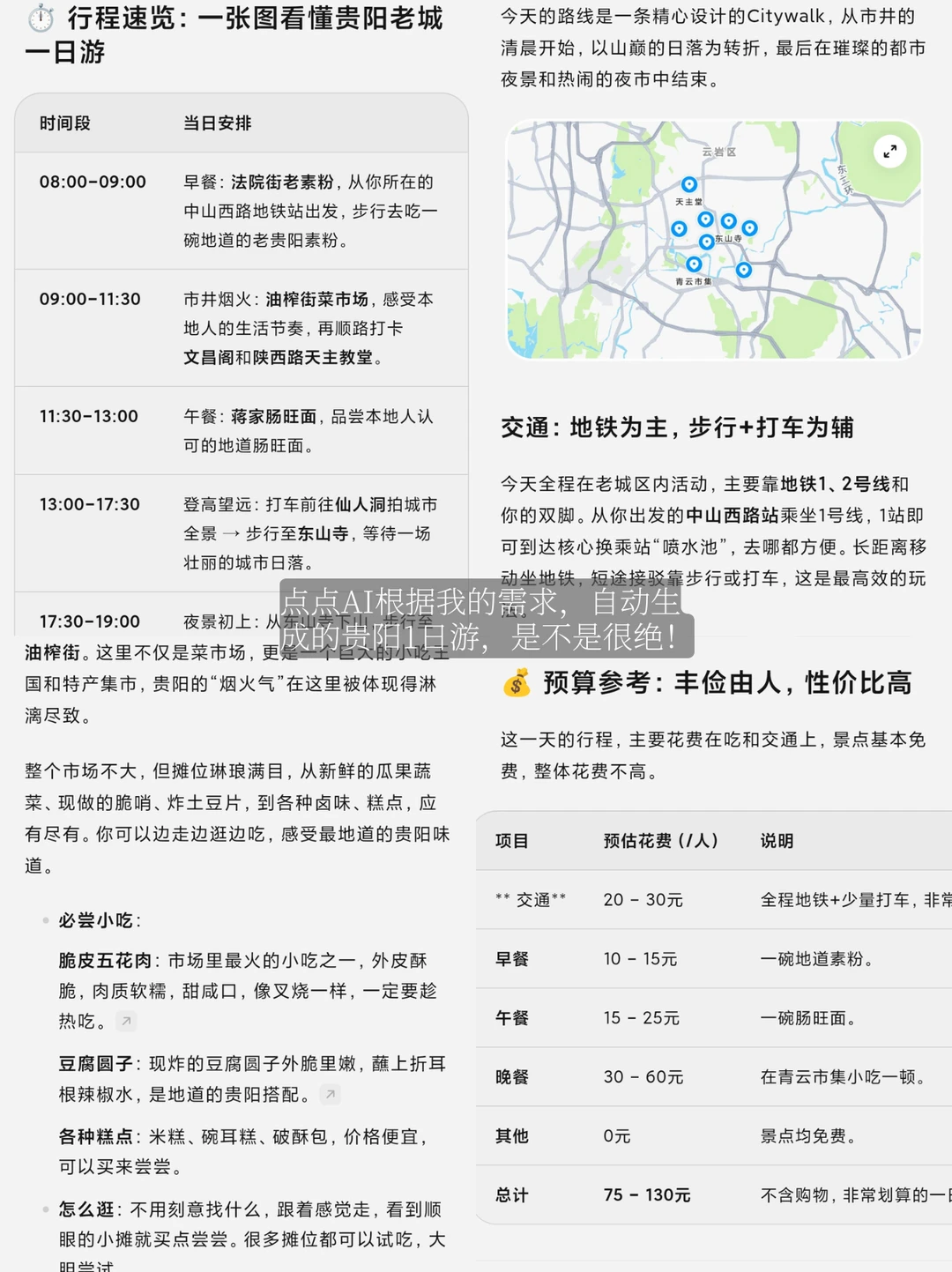 但我这J人,不做攻略出门心里又没底,怕踩雷耽误时间,就偷懒试了下📲AI点点,真的惊到我!