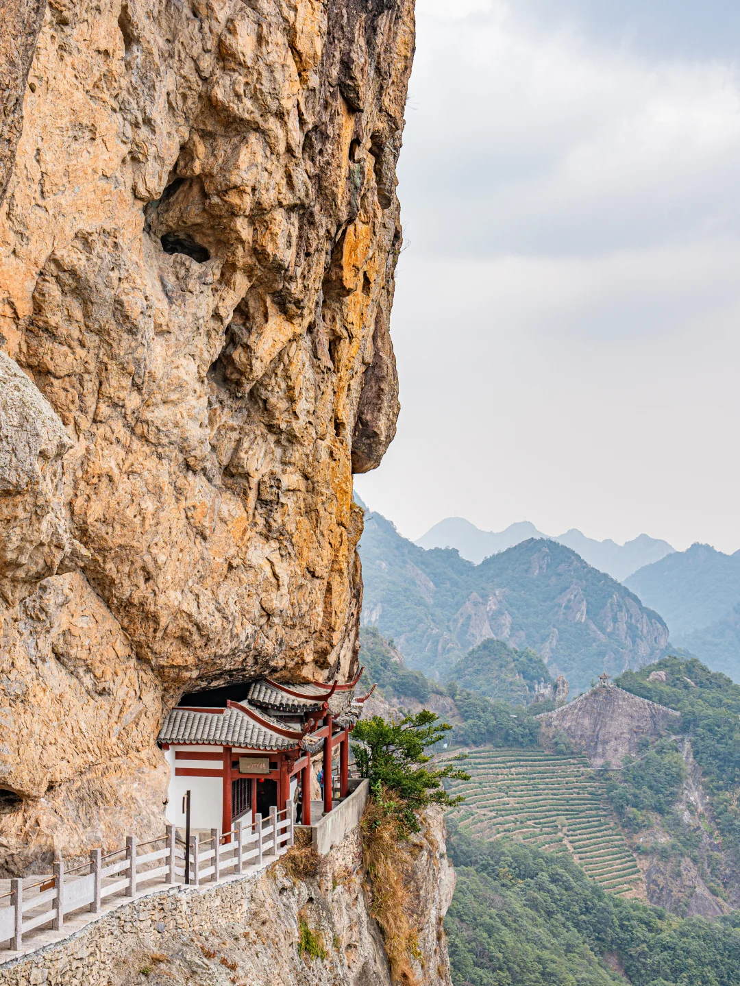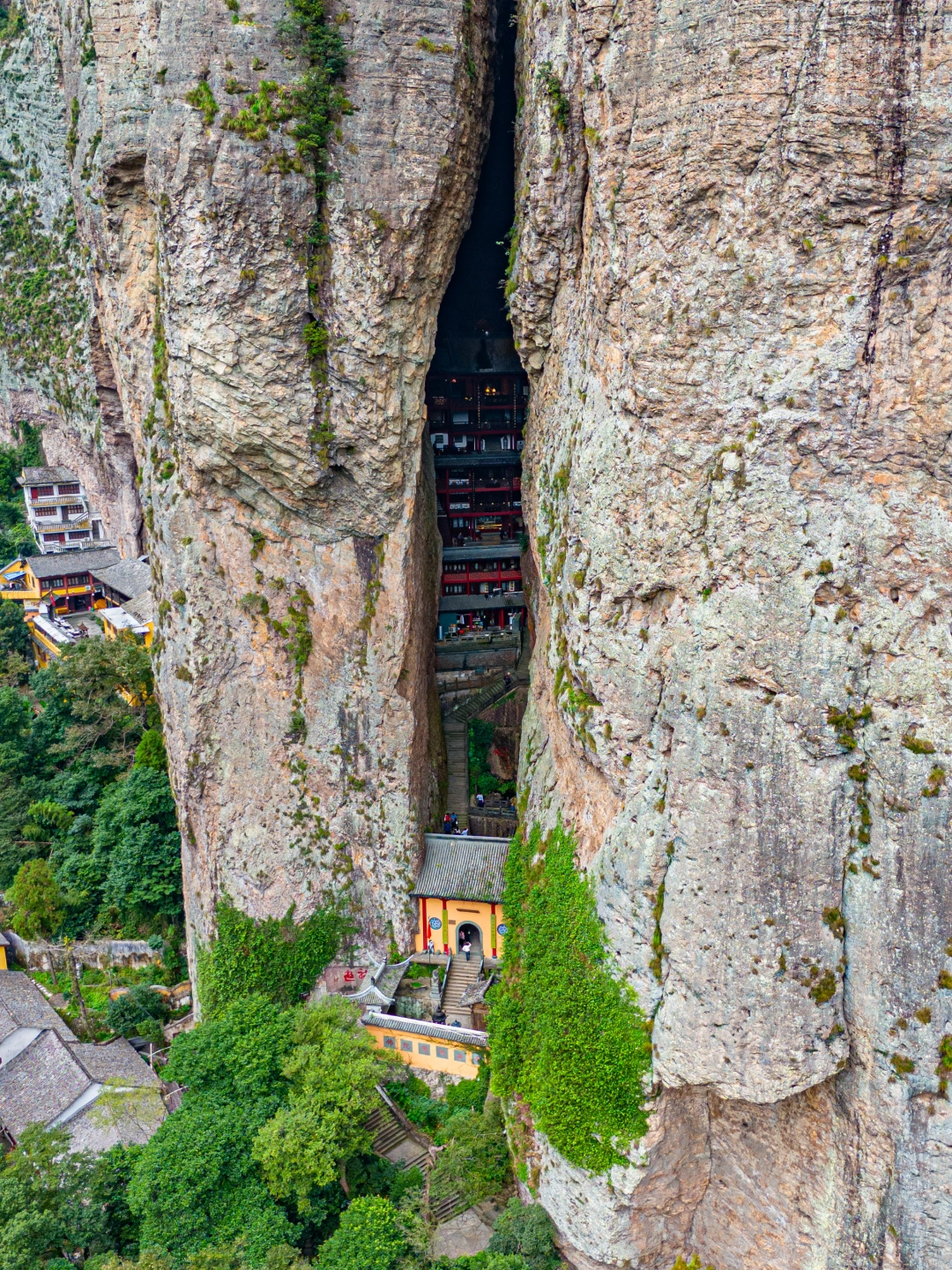 建在悬崖之间的寺庙与栈道,俯瞰山下村落,奇石险峻,真的震撼!