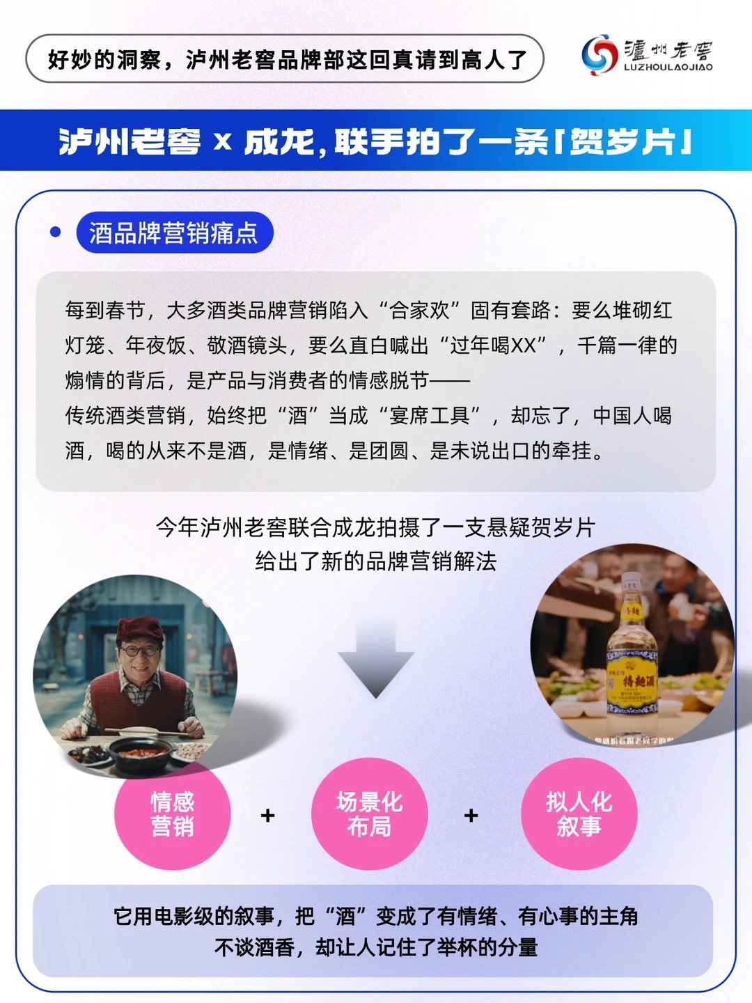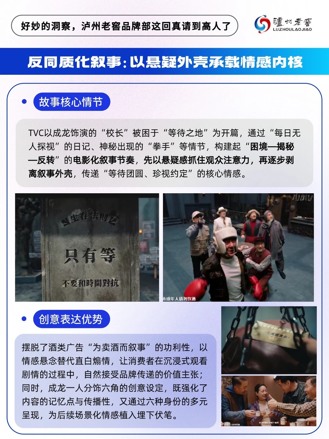 今年春节,泸州老窖携手成龙大哥,给出了一套完全不同的解题思路——它讲了一个关于“等”的故事。