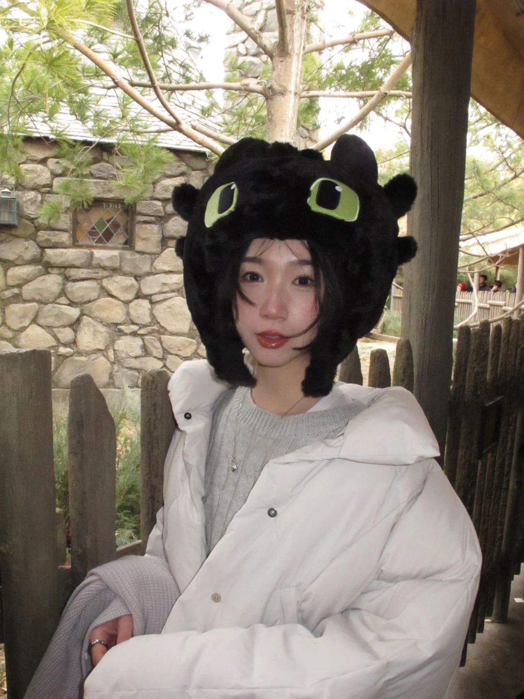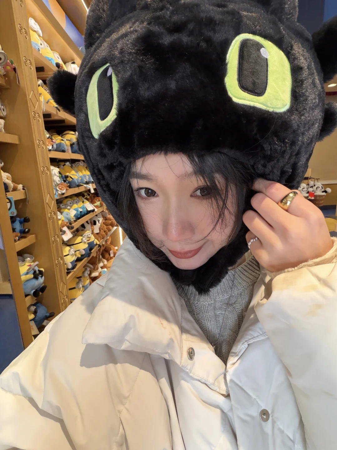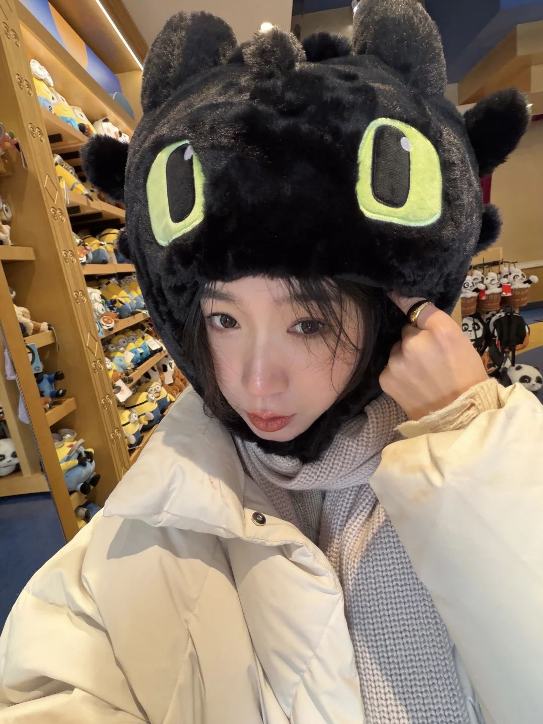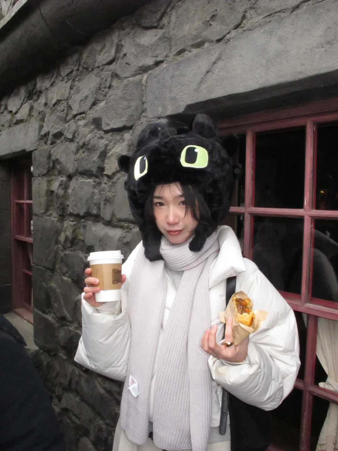 在北京寒潮那天勇闯环球 还没进园区就被冻到买了个头套 嘿,还挺可爱的 ☺️☺️☺️