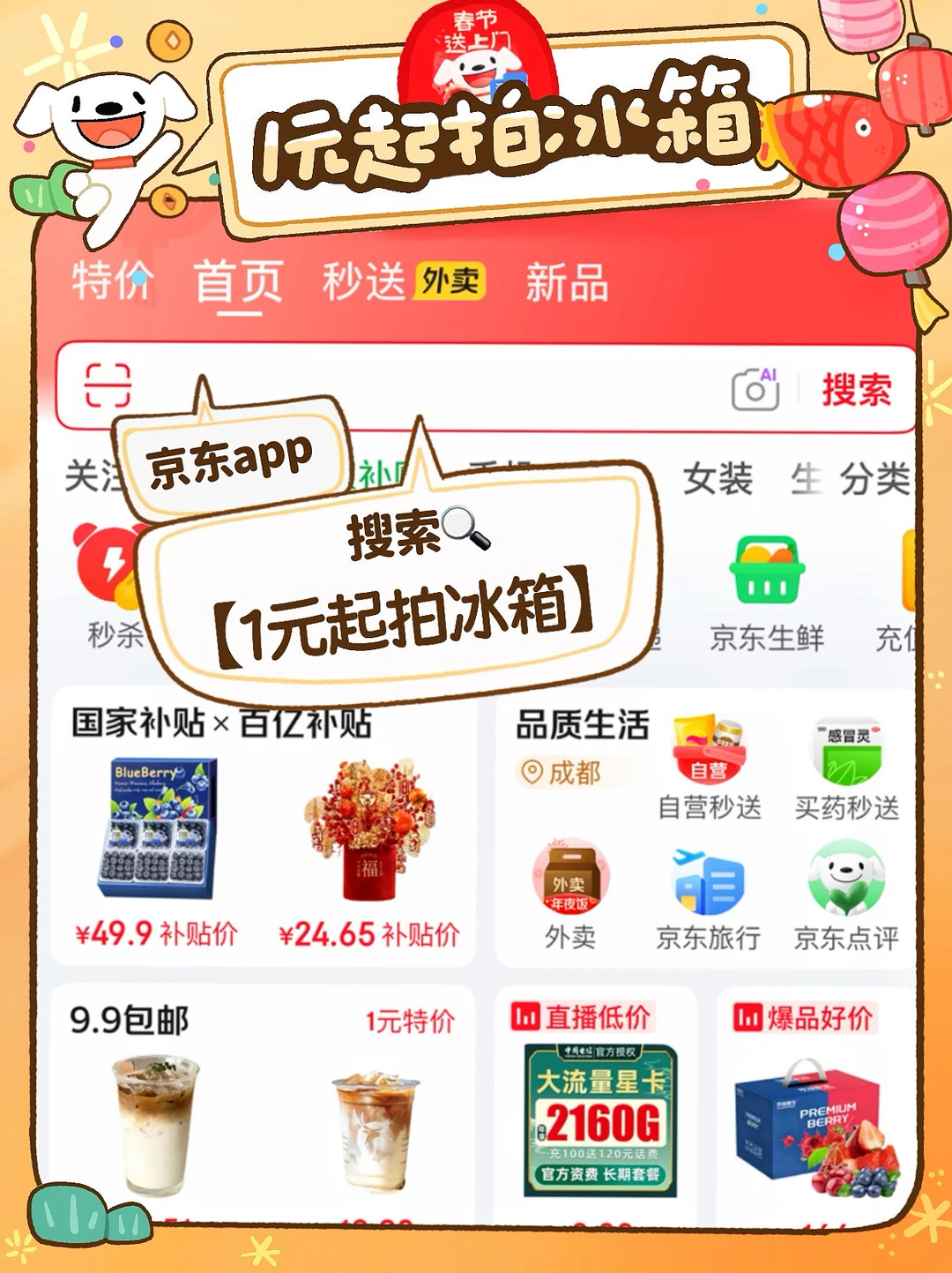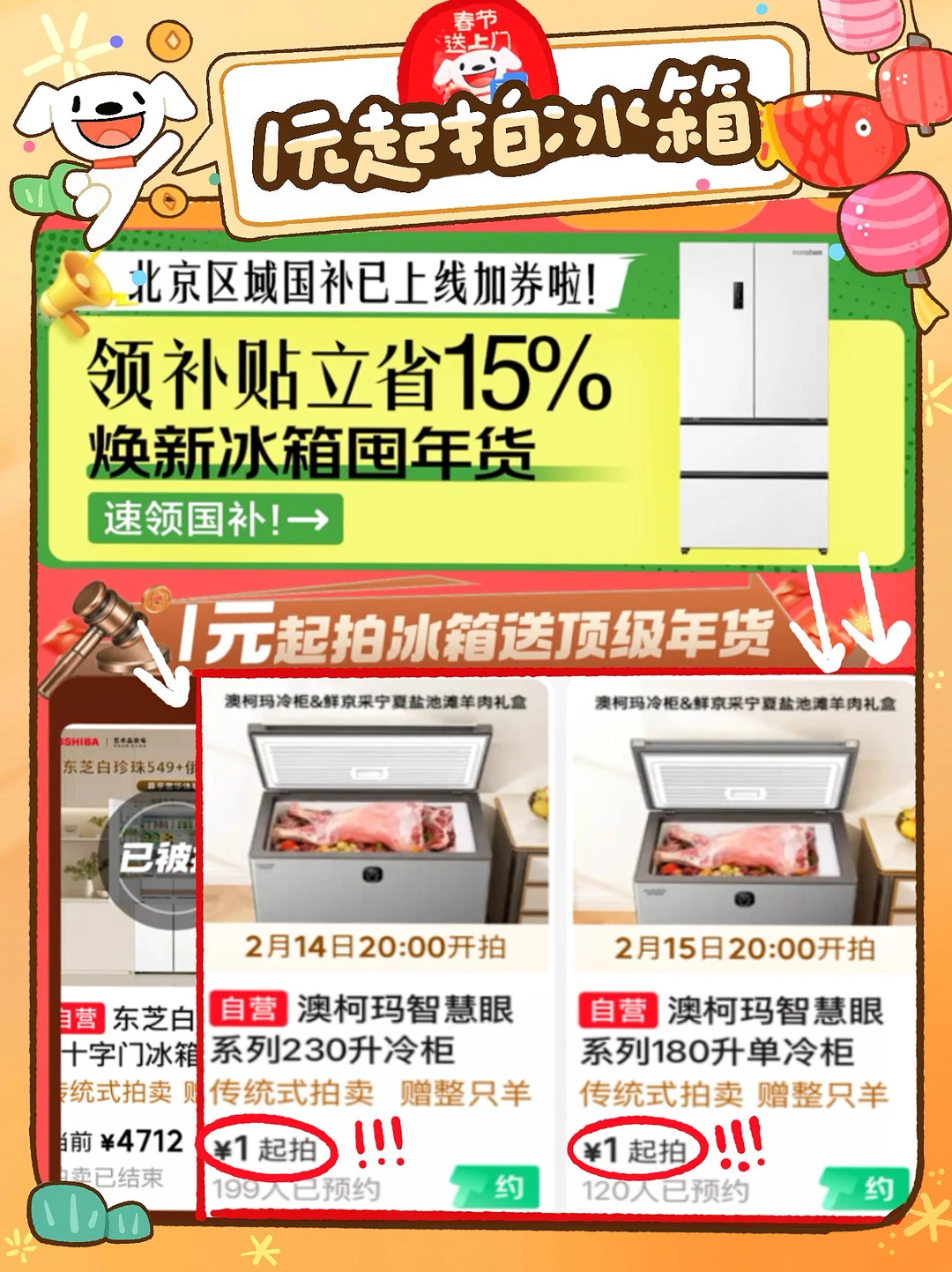 1️⃣ 打开京东🔍【 1元起拍冰箱】 进会场