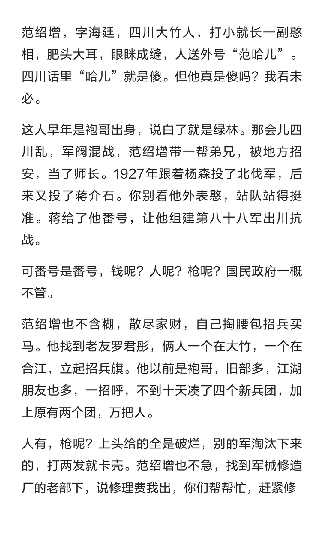 傻儿师长 范绍增 历史人物