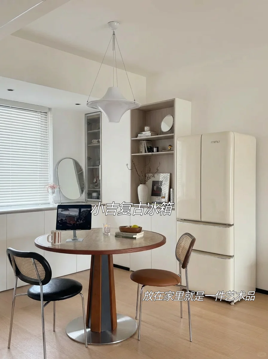 这台小吉复古冰箱真的越用越香,第一眼就被颜值戳中。是那种很正、很温柔的奶油白,复古圆弧线条,拍照巨出片。