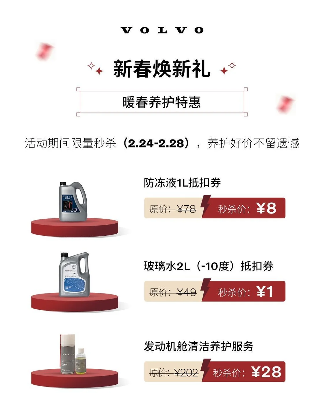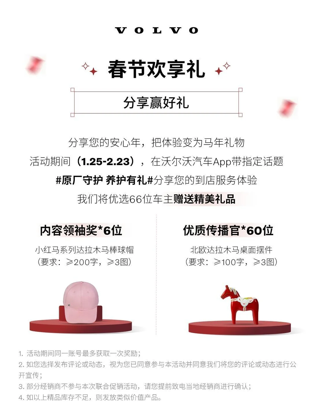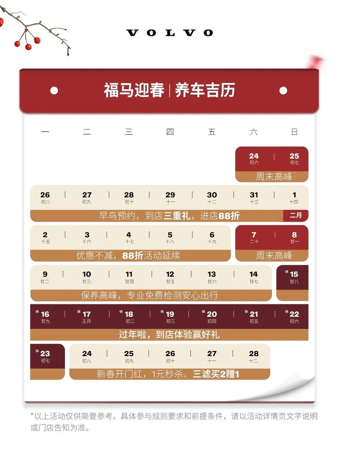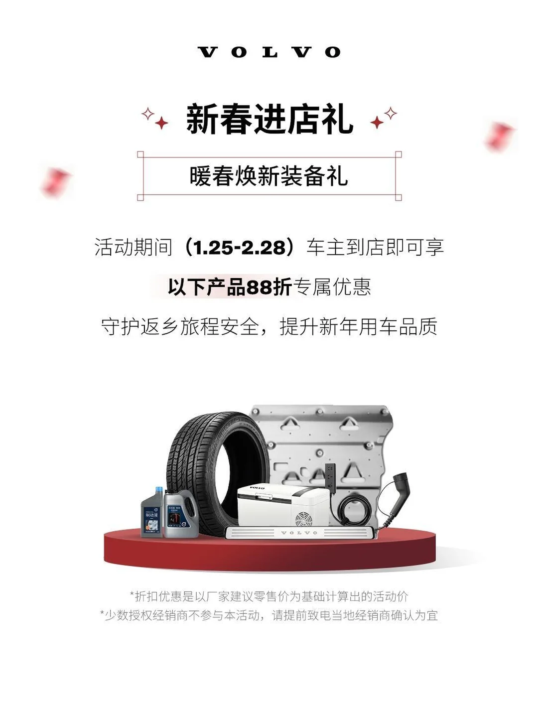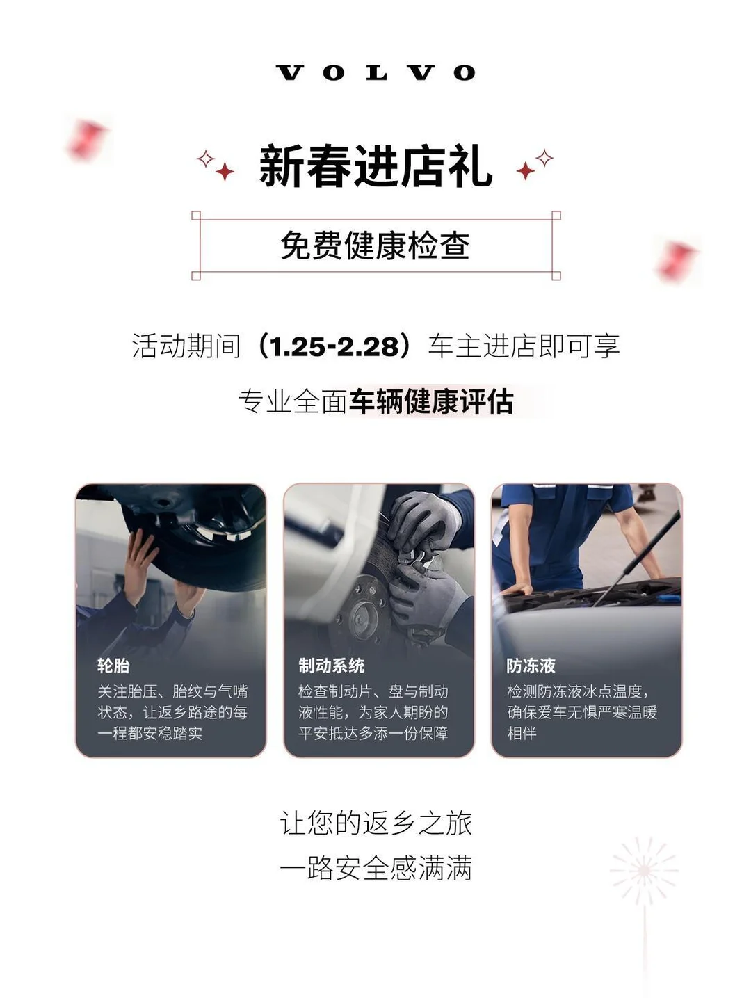 ✅到店惊喜伴手礼:活动期间到店进行养护、检测,即可领取沃尔沃定制新春福袋。
