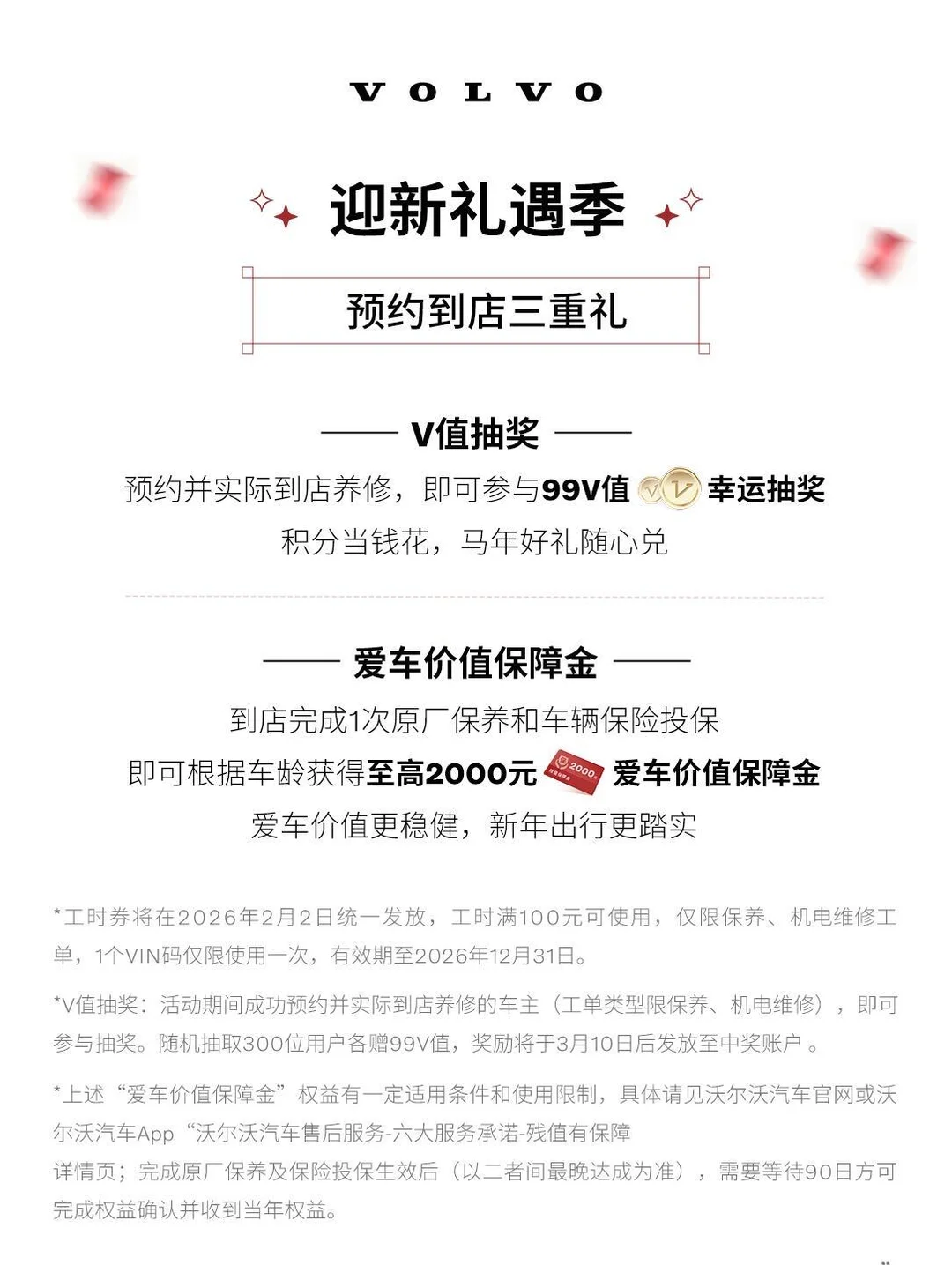 为爱车注入活力,从容奔赴团圆路。岁末维保正当时,无论是日常通勤还是春节返乡,爱车状态关乎出行安全与心情。此次沃尔沃售后诚意推出专属养护福利,覆盖全系车型。