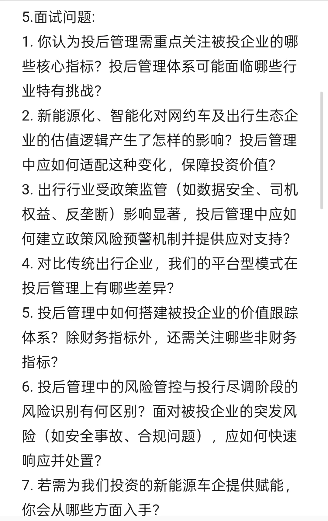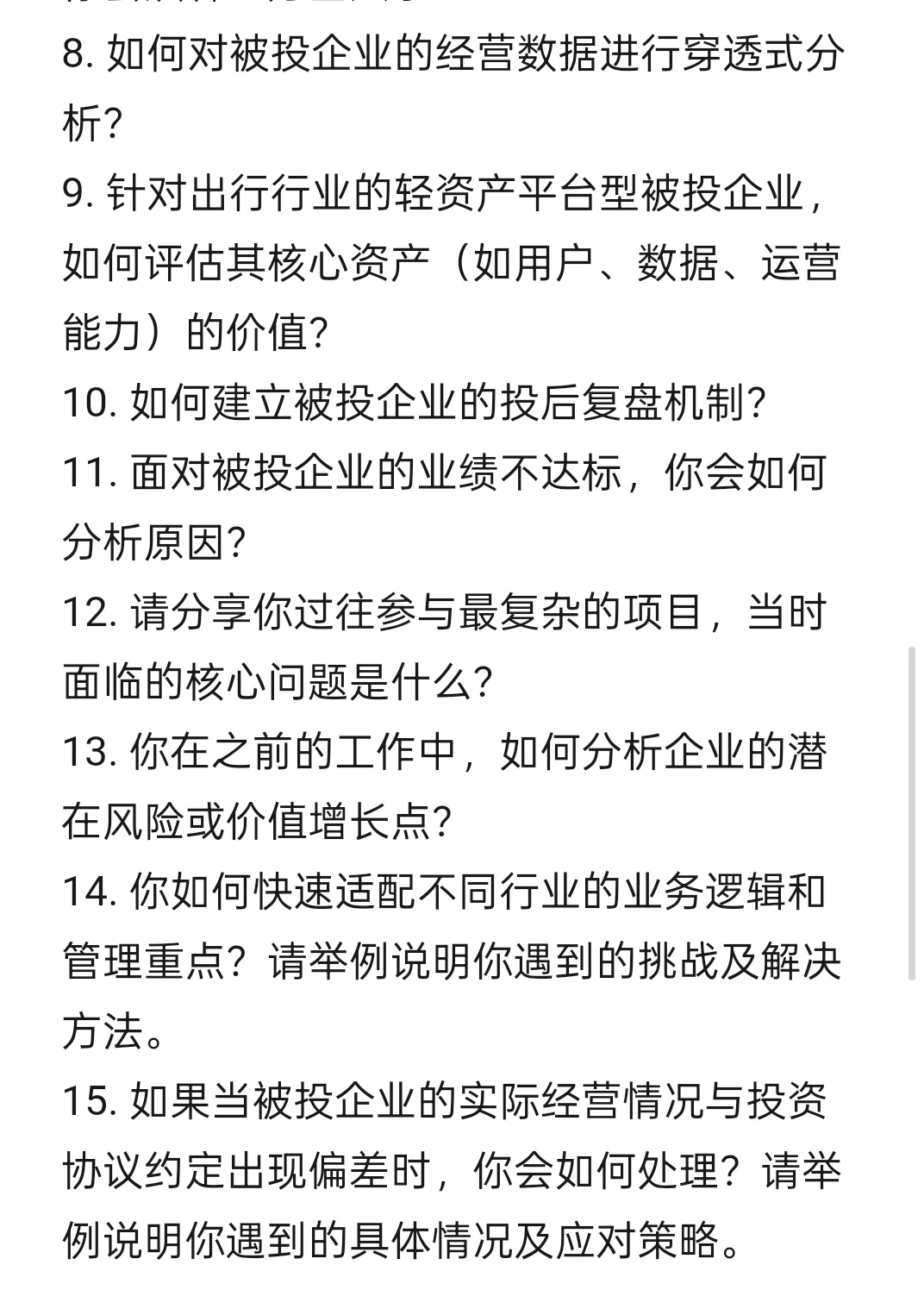 1. 你认为投后管理需重点关注被投企业的哪些核心指标?投后管理体系可能面临哪些行业特有挑战?