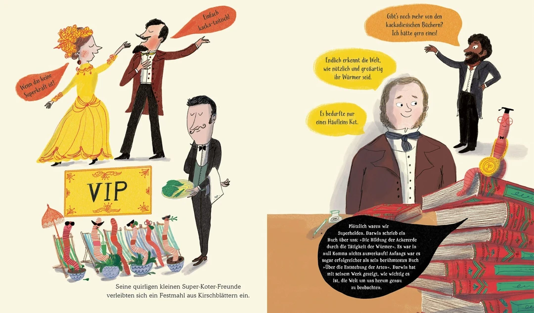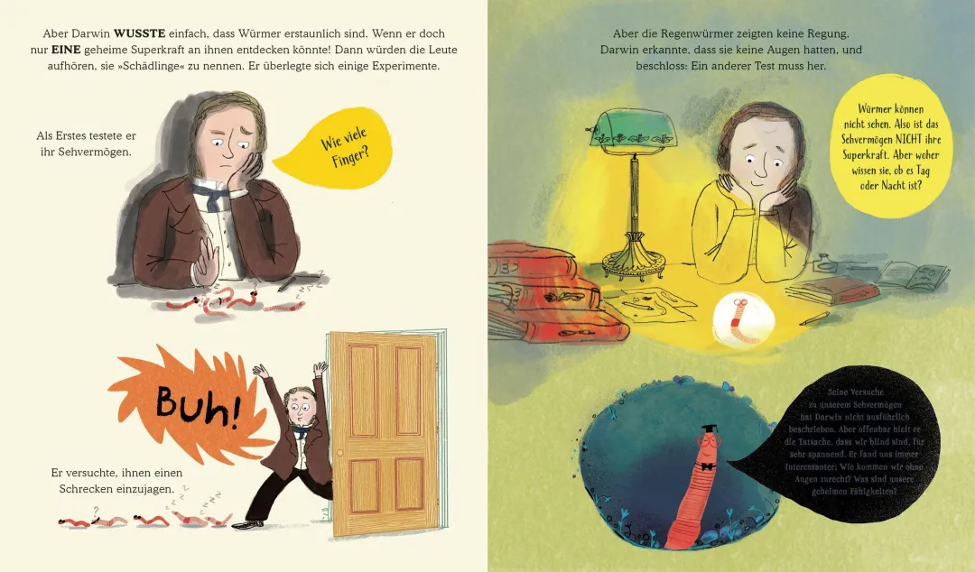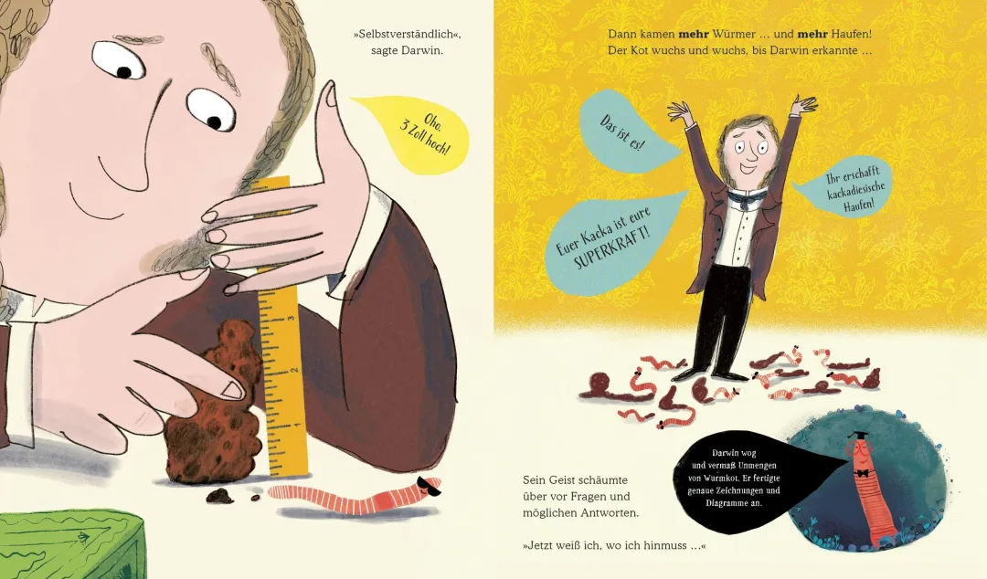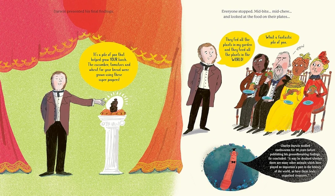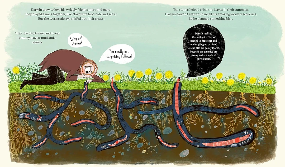 直到某天,达尔文顿悟:蚯蚓的超级力量藏在便便里!它们的排泄物富含养分,默默滋养土壤,支撑起整个地球的植物与动物 —— 没有蚯蚓的 “便便魔法”,就没有我们今天的世界!