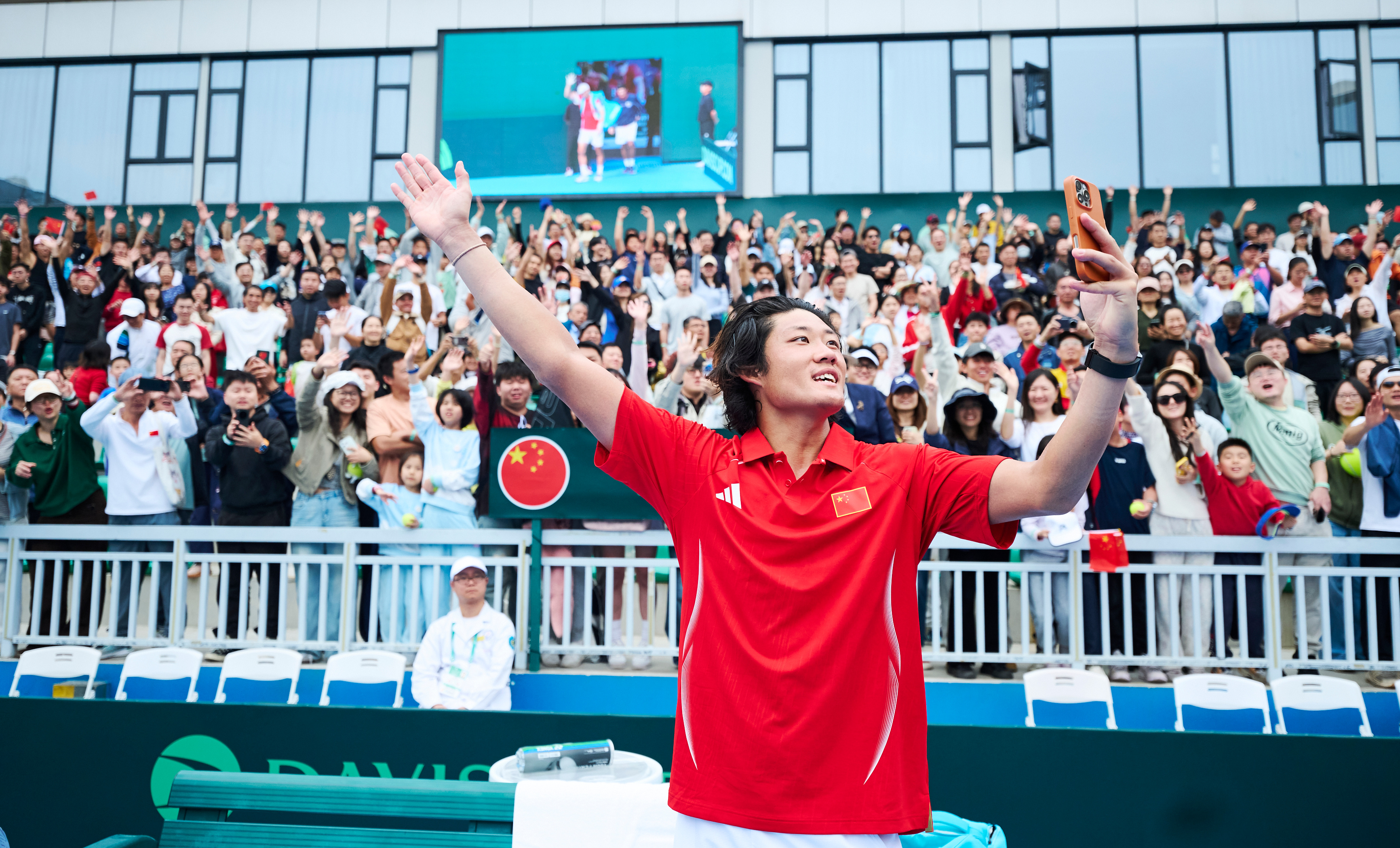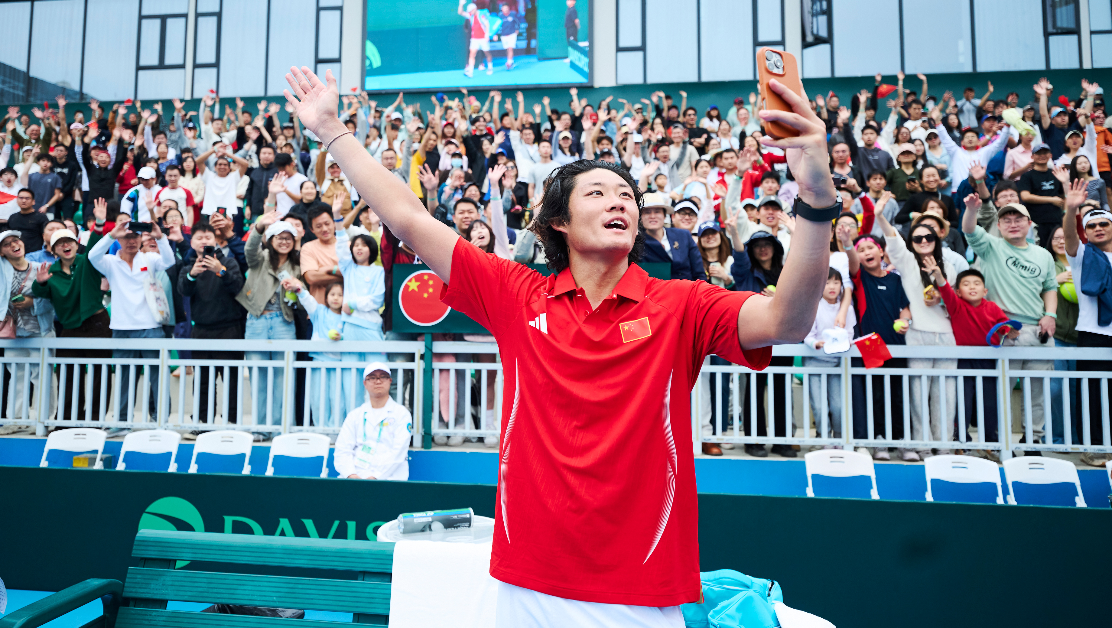 为中国队敲定戴维斯杯胜局的功臣张之臻和球迷自拍组图!